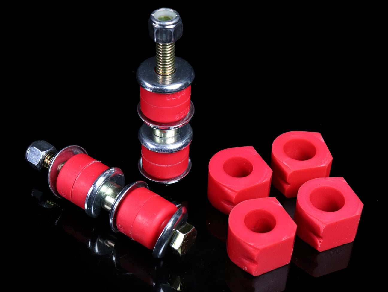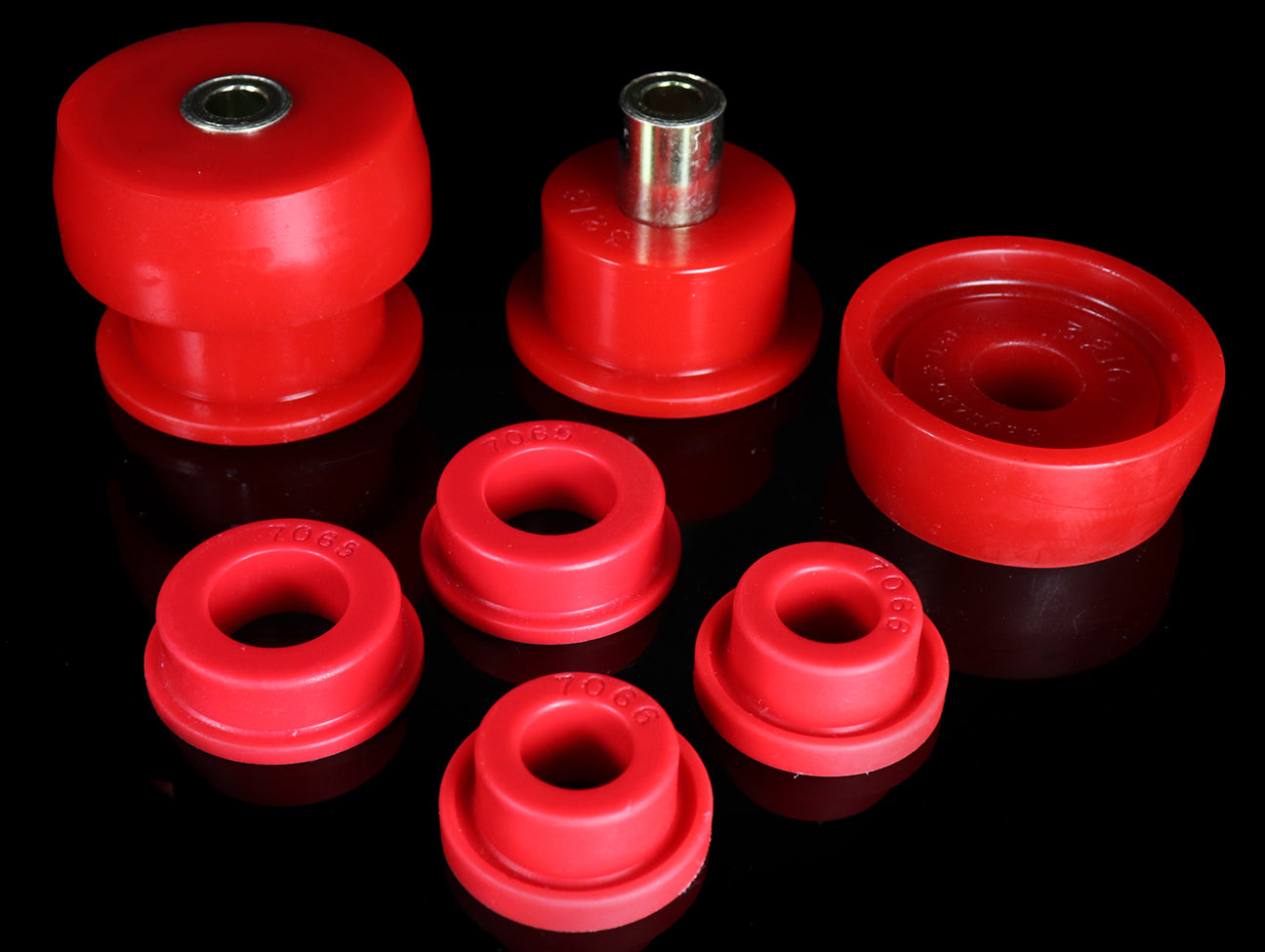 Energy's complete Master Sets, both restores worn mounts and bushings as well as adds a dramatically higher degree of performance to any vehicle. The Master Bushing Set offers complete coverage front to back of the vehicle's chassis. Energy's special formula HYPER-FLEX performance polyurethane components, which is higher durometer (firmness) material and re-engineered performance minded components, assures long-lasting performance in all sets. Performance many O.E.M. bushings and mounts just can't offer. For cars on the street and weekend racers (both front and rear wheel drive), yet so good–successfully used in pro racing!