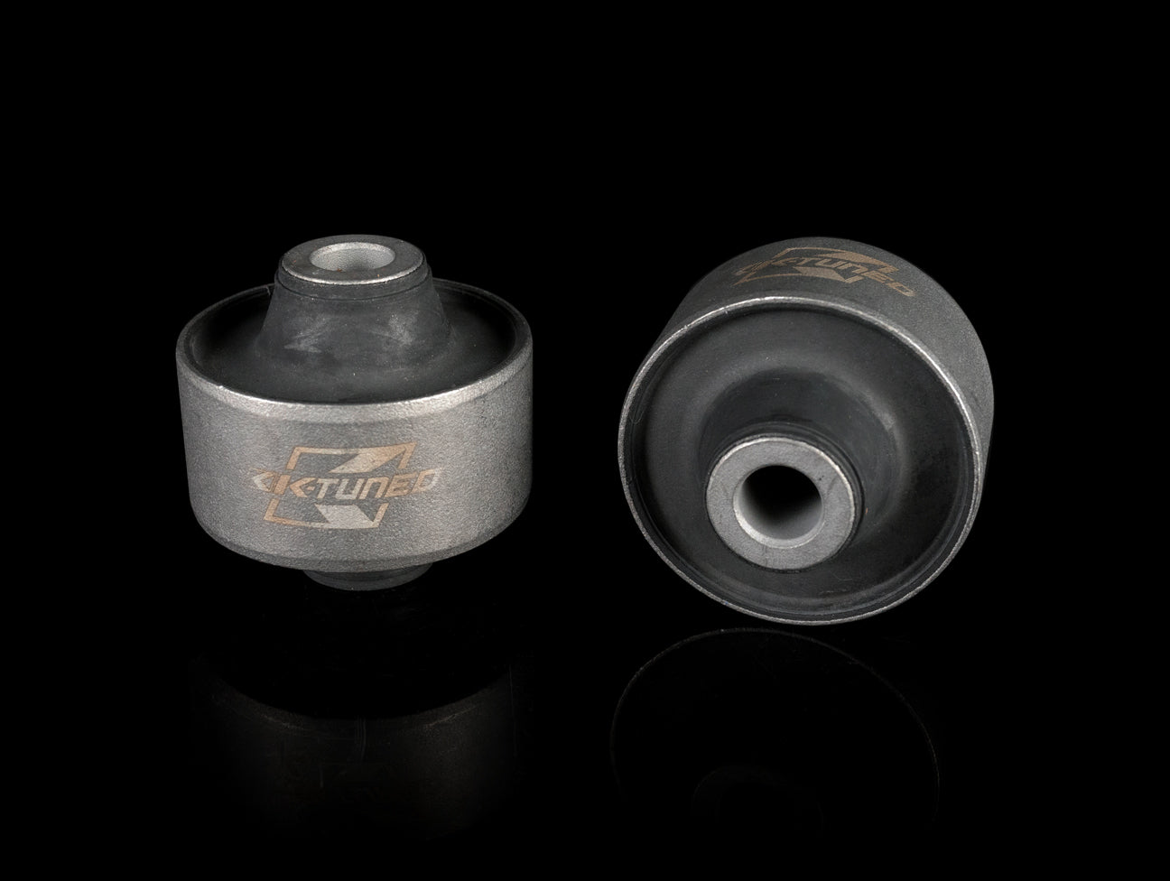 K-Tuned upgraded front compliance bushings with hard rubber bushings. Old worn and tired bushings will drastically reduce the feel and handling of your car. Replacing worn bushings and suspension components can really make an older car feel new again.