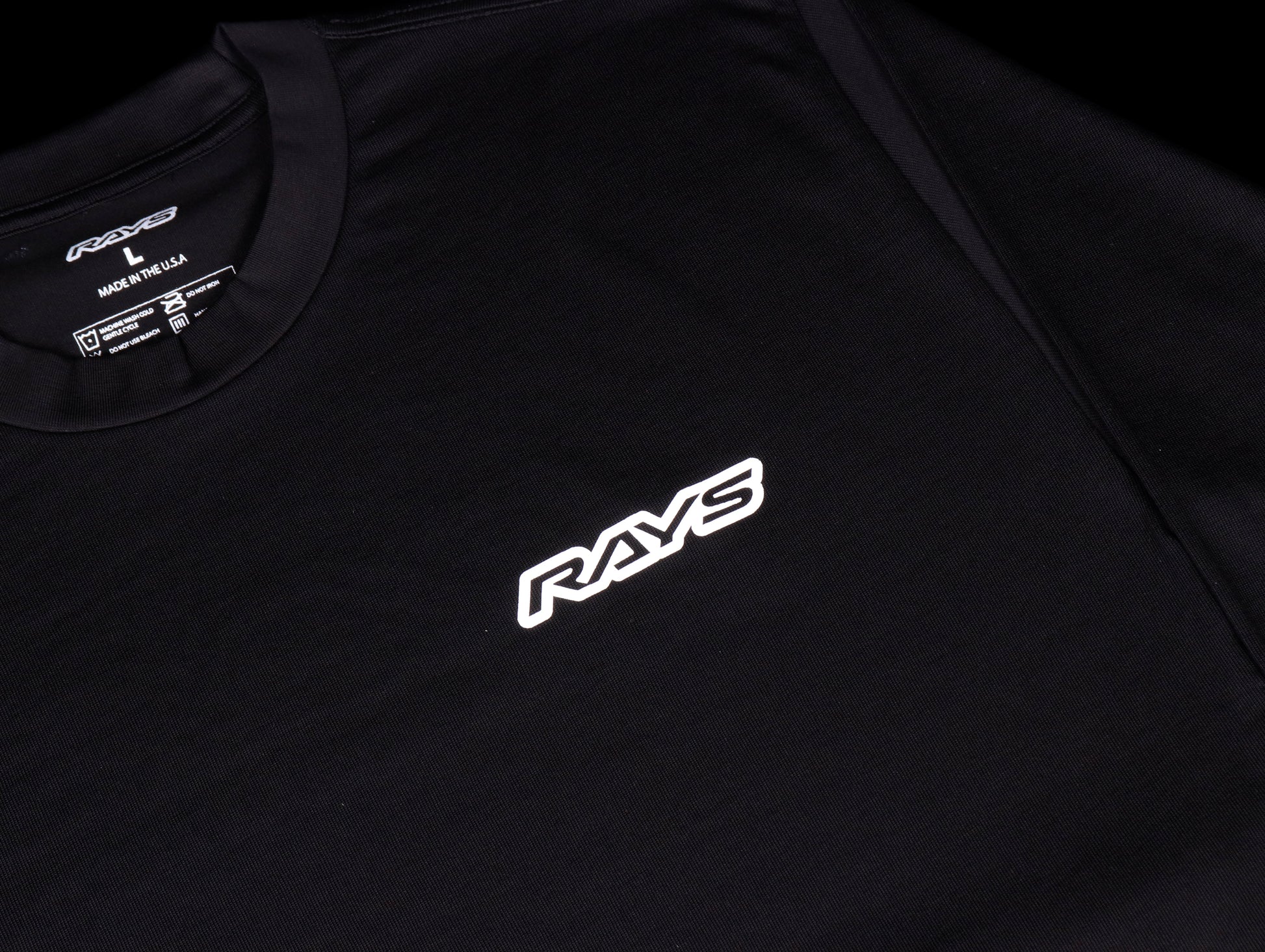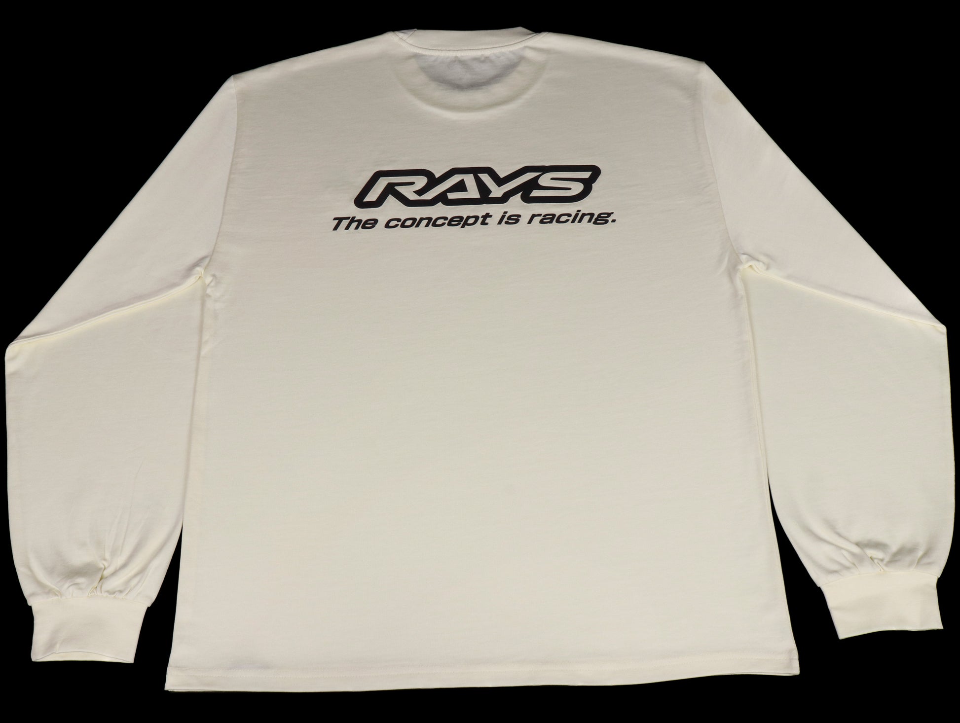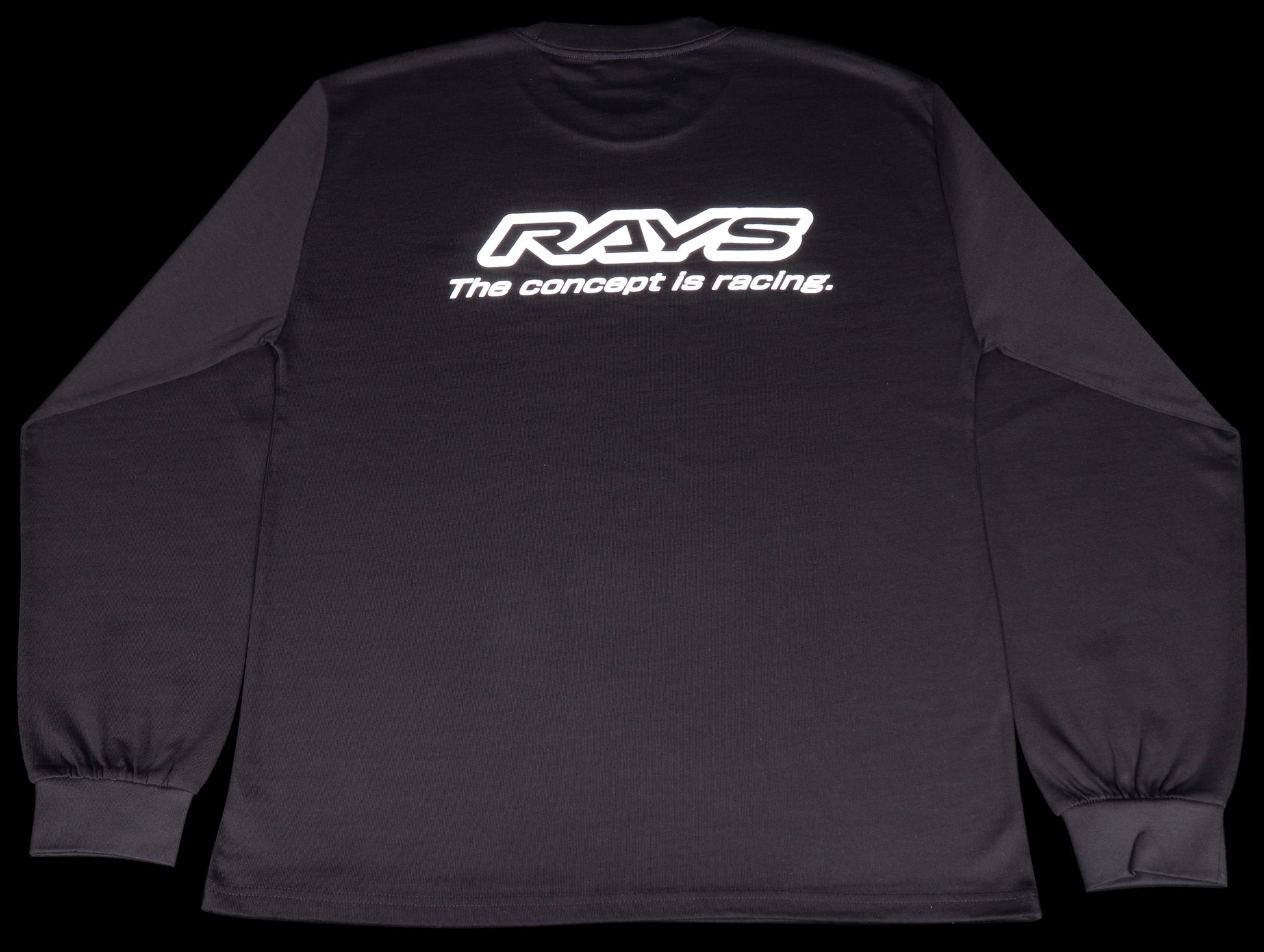 Authentic RAYS cotton long sleeve tee with RAYS logo on front left breast and 'RAYS The Concept Is Racing' logo on the back. Rays tag at the rim of the shirt. Tagless Tee.