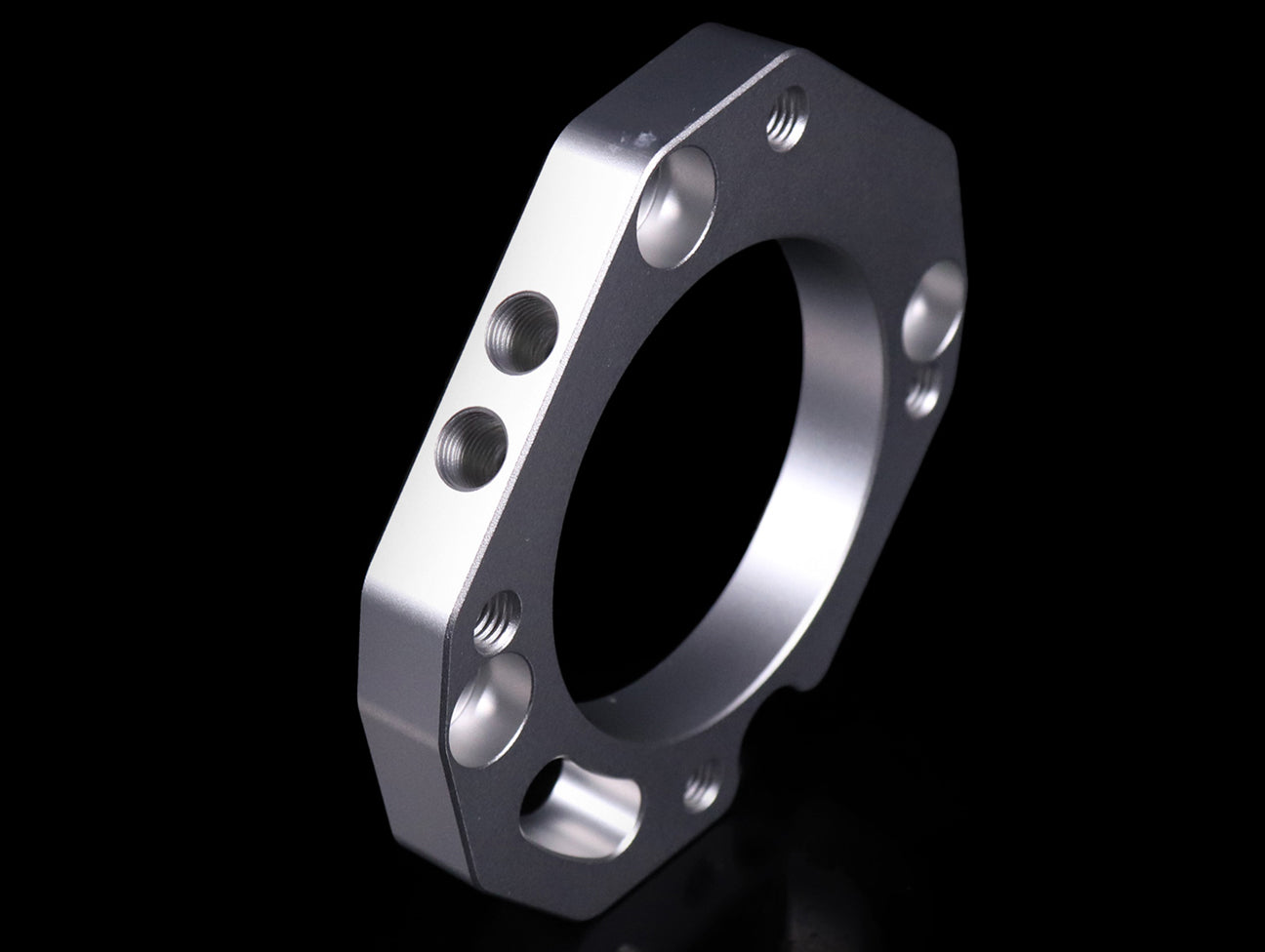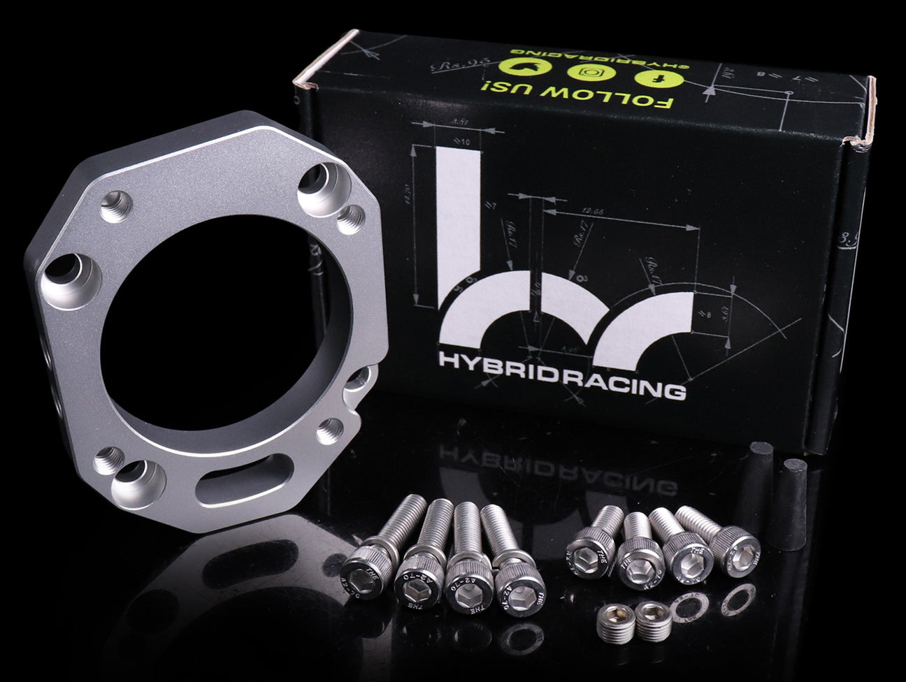 The RBC manifold provides significant performance improvement over the stock PRB and PRC (K20A2 Type S and K20A Type R) intake manifolds. To complete the intake manifold conversion, you need to couple the throttle body to the manifold – an adapter directly bolts a 2002-2006 RSX-S/ITR or 2002-2005 Civic Si/CTR throttle body to an Accord Euro R, 2006-2008 Civic Si, or 2004-2005 TSX intake manifold. The Hybrid Racing 70mm adapter kit includes all mounting hardware required to attach the adapter to the intake manifold and the throttle body to the adapter. Two rubber plugs are included to fill the unused MAP sensor port, located on the RBC/RRB/RBB intake manifold, and the EVAP Purge Control Valve port if needed to gain additional hood clearance. Finally, the adapter kit includes 2 1/8" NPT ports to eliminate the need for vacuum T-offs or an auxiliary vacuum spacer 1/8" NPT plugs are included and pre-installed for those who may not have an immediate use, but desire a vacuum/boost option in the future.