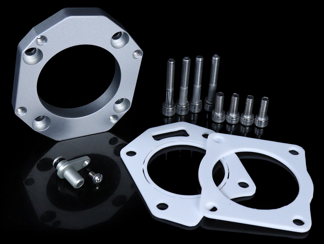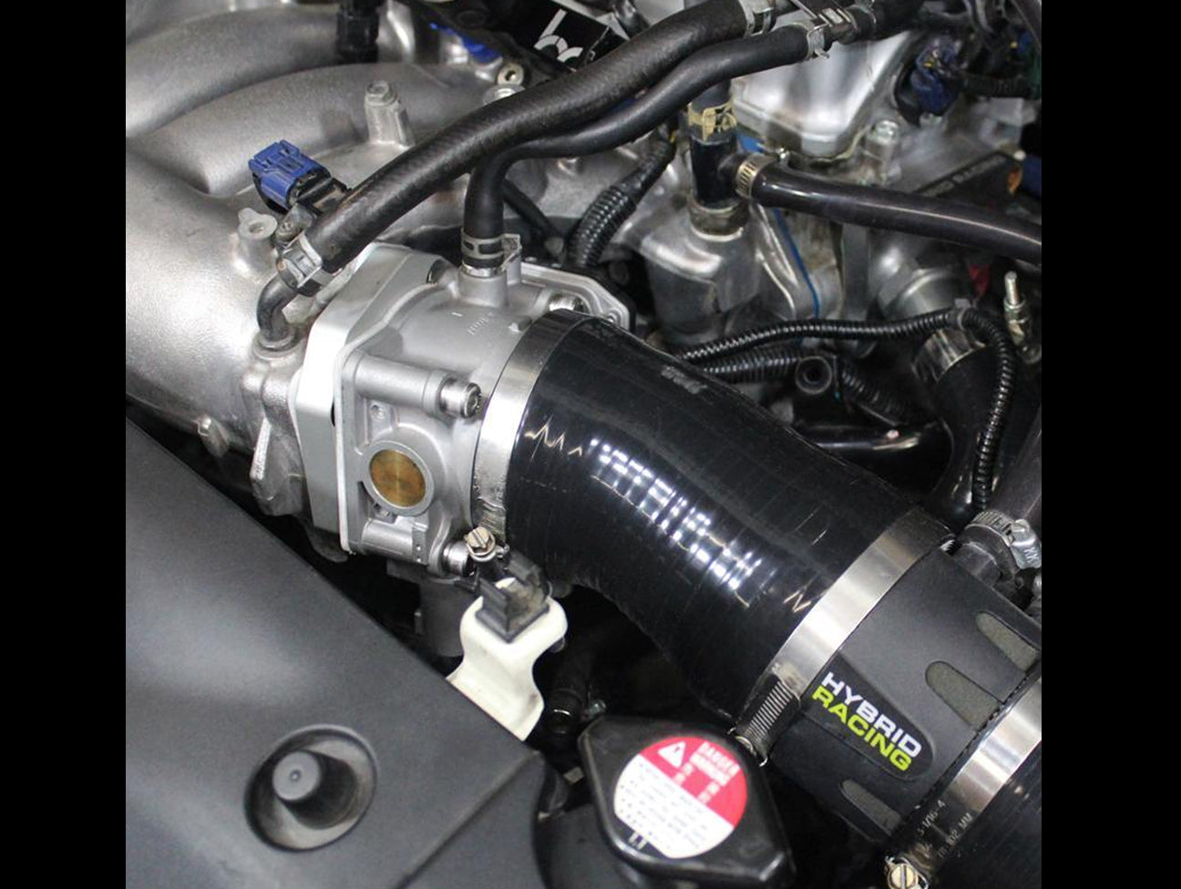 The Hybrid Racing ZDX throttle body adapter allows you to bolt a throttle body from an Acura ZDX engine onto your 2006-15 Civic Si. The ZDX throttle body has a larger bore than your stock throttle body allowing your engine to make more power. Expect to pick up between 2-10hp depending on the other modifications you have installed. We recommend port matching your intake manifold to 70mm and tuning with a Flashpro to maximize power and driveability. The kit comes with everything you need to complete the install in less than 30 minutes. Works with RBC and RRC intake manifolds.
