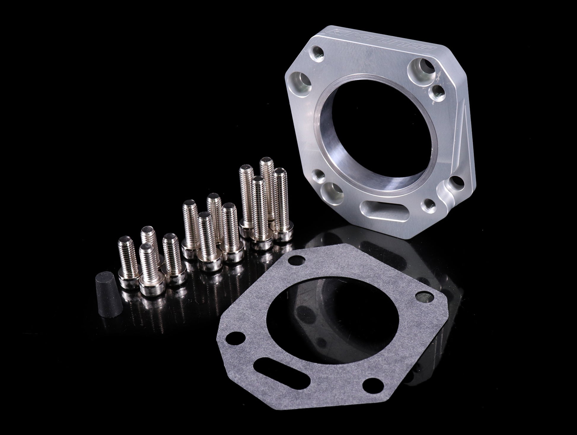 The Honda ZDX throttle body is a great upgrade for DBW (Drive By Wire) cars looking to increase airflow. It offers OEM reliability at an affordable price. K-Tuned's adapter makes it easy and simple to bolt it up to any manifold with RBC/RRC bolt pattern. They've incorporated several great features to make the process simple and offer best fitment. The adapter is made as a two piece design to ensure proper alignment when installing. The first plate (Manifold Plate) bolts up to the intake manifold and seals with an o-ring. At the base hidden away form sight you will find two 1/8 NPT ports that can be used for accessory vacuum lines or EVAP Purge, Brake Booster, etc. You will also find a new MAP port. K-Tuned relocated all these to the bottom to help keep that clean and simple look. Next, they have an optional tapered sleeve that can be used if you do not want to port match your manifold. The sleeve offers a perfect transition from the larger ZDX port down to the stock manifold inlet and ensures smooth airflow. They have also included a thermal gasket that is used between the throttle body and the top plate (Throttle Body Plate). As usual they include all the necessary hardware plus two 1/8 NPT plugs, and two rubber MAP plugs.