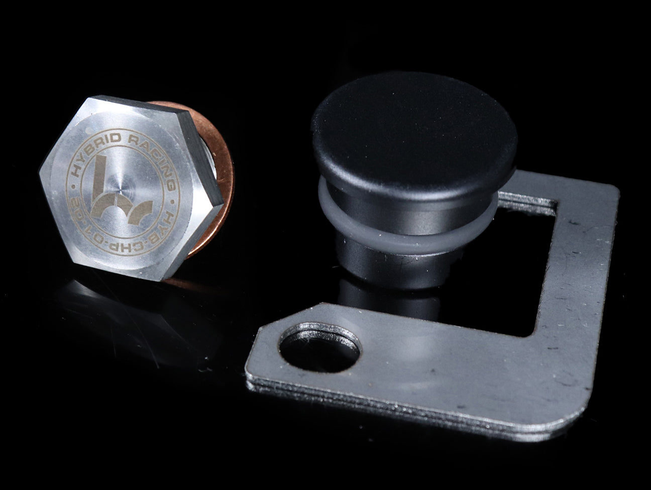 Clean up your engine bay and eliminate unwanted weight with the Hybrid Racing Heater Core Delete Kit for K-swapped vehicles. This kit allows you to completely delete the heater hoses running from the T-stat housing and cylinder head to the heater core behind your dashboard. Remove the heater hoses and install these two plugs in their places to facilitate removal of the heater core to shed some pounds and keep that engine bay super clean. Never deal with looped hoses again!