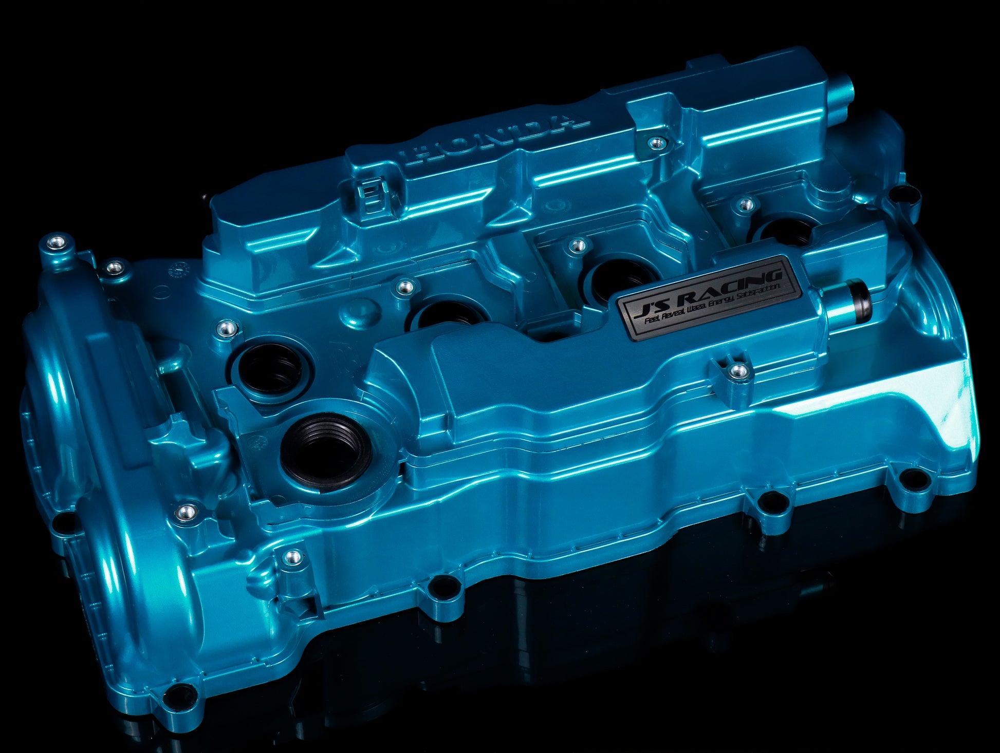 The J's Racing FK8 Valve Cover is coated with metallic green which represents the J’s Racing brand. It provides an accent on your engine bay with an eye catching appearance.