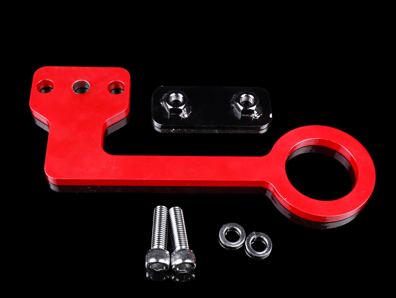 This J's Racing Tow Hook is powder-coated steel construction. It comes with the mounting hardware. Can be used with OEM bumper. A safety requirement for many racing sanctions.