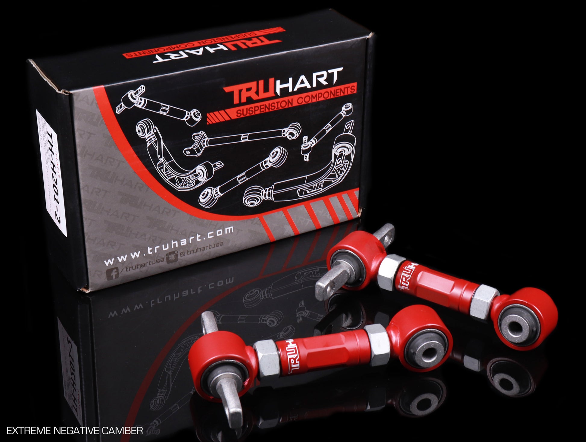 Made from machine welded, high quality steel and hardened rubber bushings, TruHart camber kits offer an unparalleled amount of adjustments for most application. From street to track, Truhart’s specially engineered suspension products give you the control to have your vehicle dialed in and race ready.