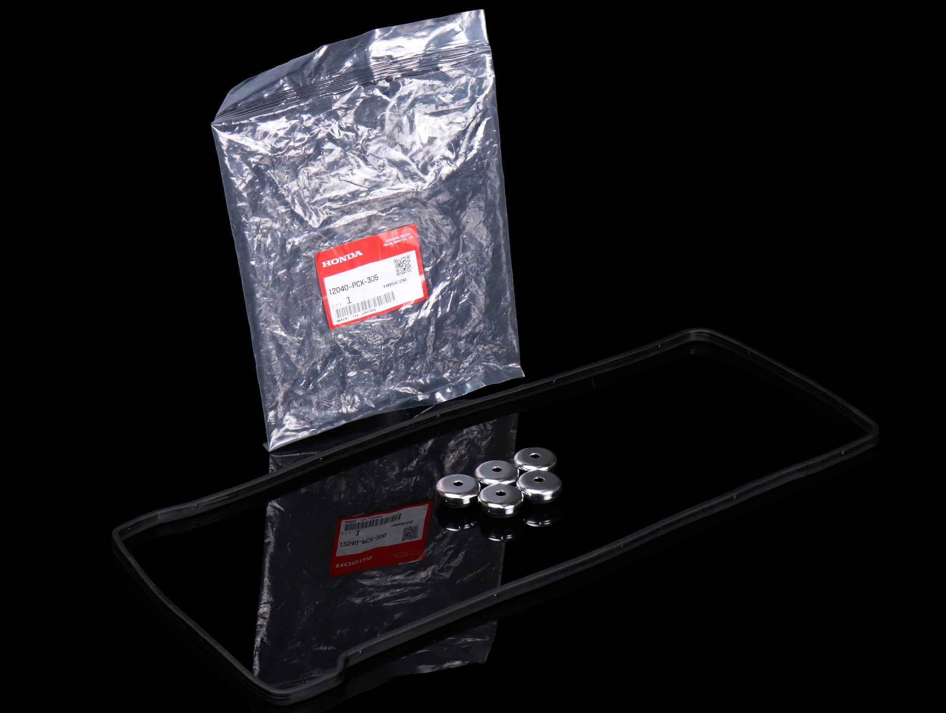 Besides a new gasket, this kit includes new grommets that seal around the mounting studs. These authentic Honda parts (Gasket Set, Head Cover # 12040-PCX-305) fit all S2000’s from 2000 to 2009. Note: spark plug tube seals sold separately (part # 12342-PCX-004).