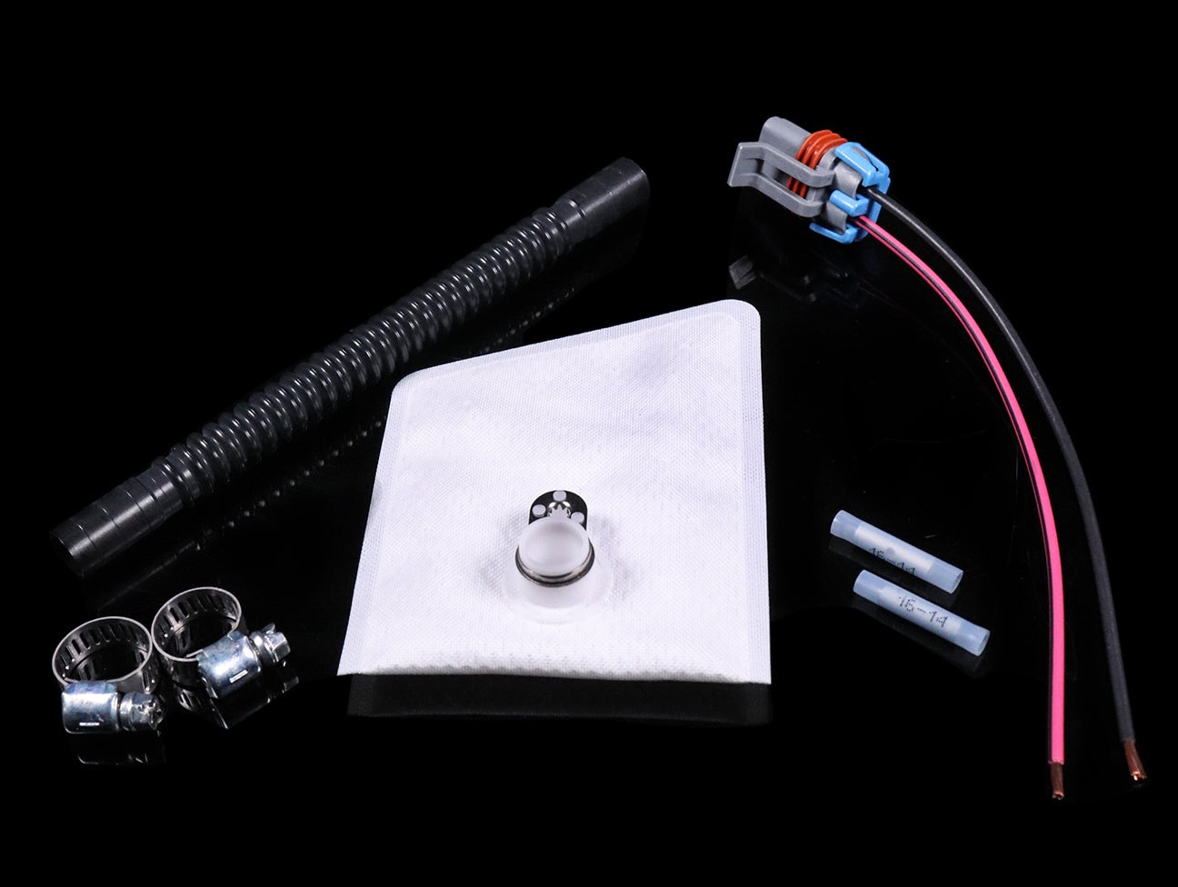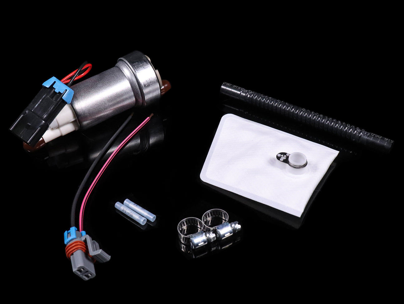 Walbro universal 450 liters per hour (LPH) high pressure in-tank FlexFuel E85 fuel pump for Import and Sport Compact applications. Kit includes pump, filter, hose, wiring and clamps.
