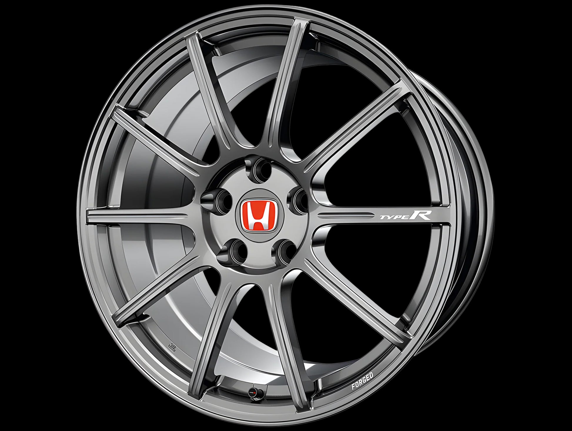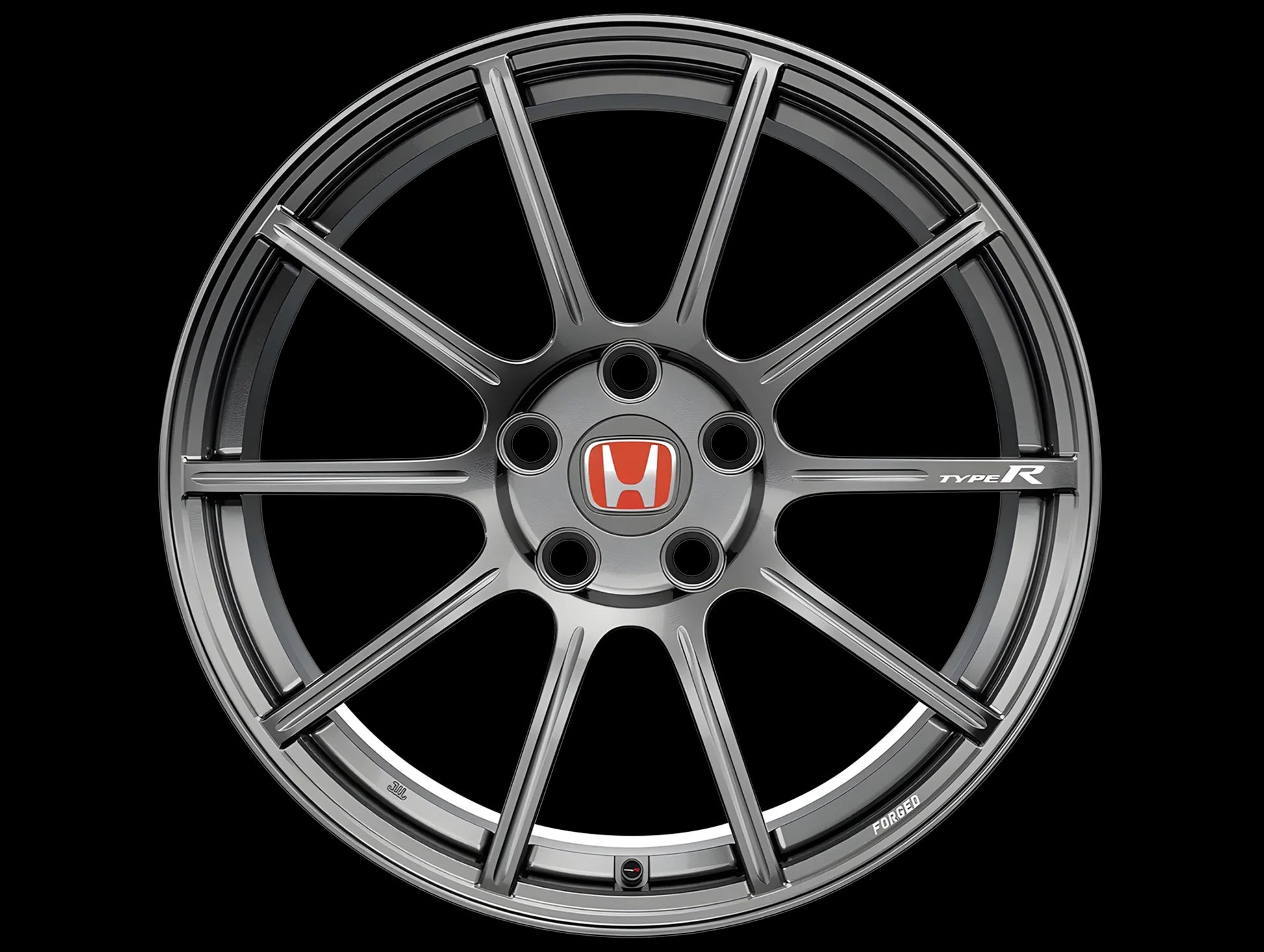 Honda Access optional wheel specifically designed for the FL5 Type R. Distinct Shark Gray metallic finish with red center caps and laser etched Type R logo create a unique styling that stands apart from other Type R's. Being the forged wheel is 5.29 pounds lighter than the stock wheel, added performance benefits can also be seen due to less rotational mass while retaining the same sizing as factory.