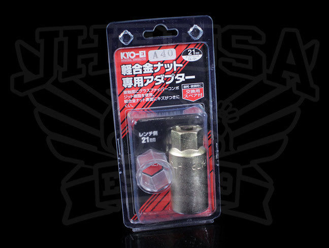 KYO-EI's light alloy special adapter A40 with sleeve is a dedicated adapter for light alloy lug nuts. The included sleeves protect the lugnuts from becoming scratched and blemished.