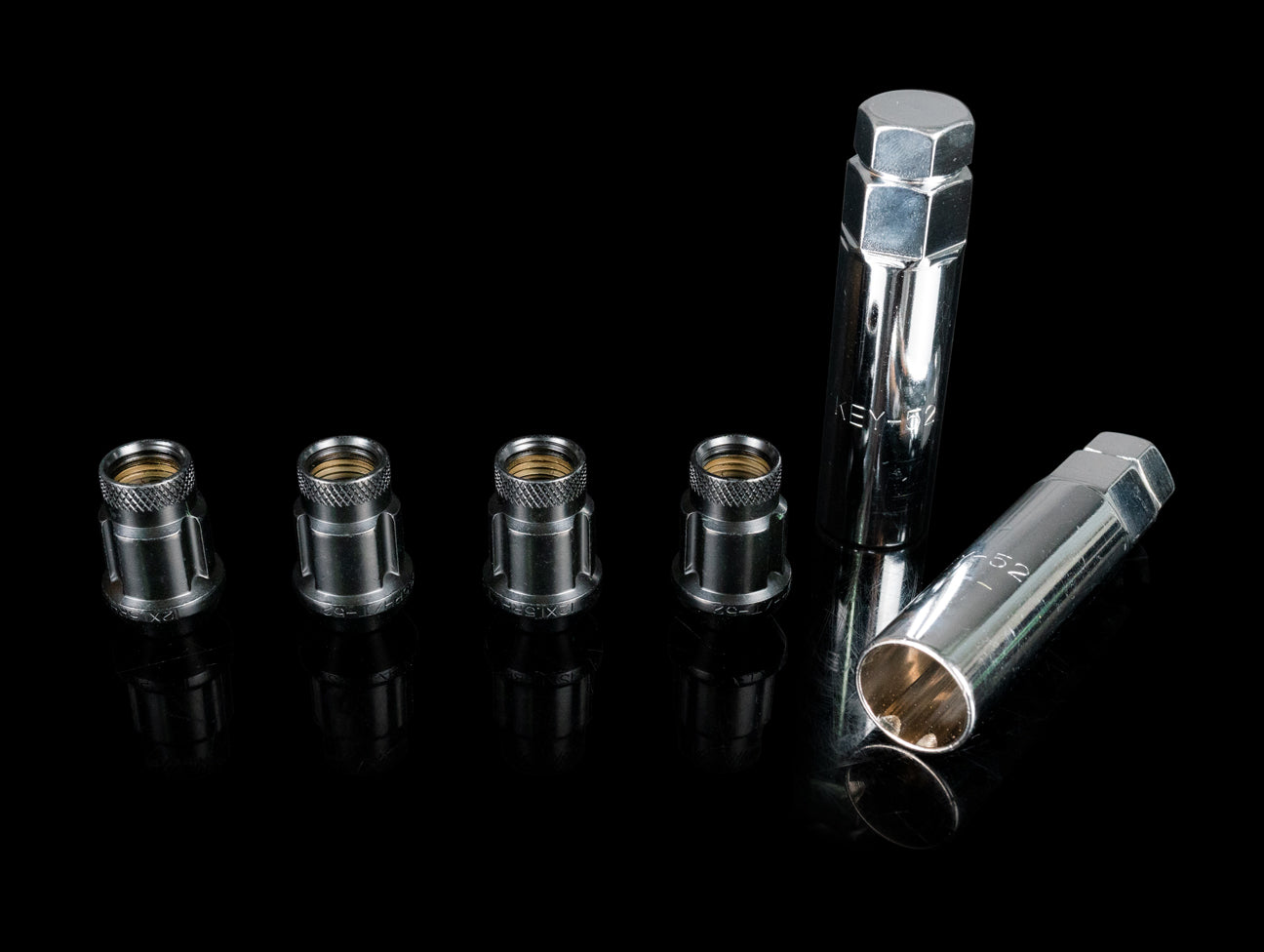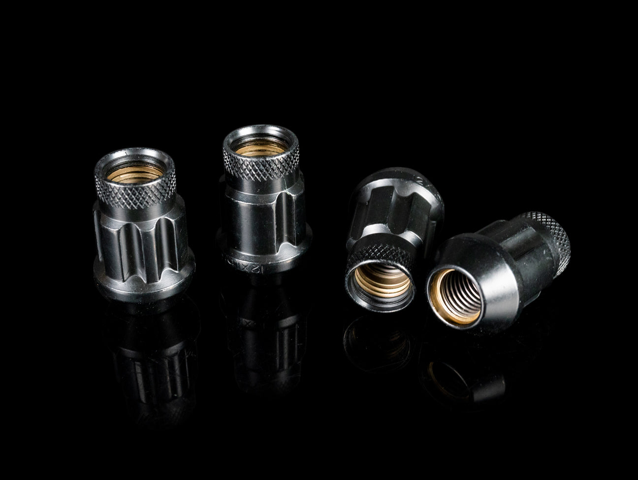 While the 19 Hex is unique, sometimes you need that extra bit of security to ensure you wheels stay on your car at all times. Wheel Mate Monster Lug Lock Set ensures that your wheels are secure while matching the good looks and quality of the Monster Lug 35. Made of the same Cold Forged Chrome Vanadium, the Lock Set is OEM tough and race car proven, as it was derived by racing. The oversized 60 degree tapered seat ensures better contact on the wheel and the top knurl makes installation easier. The Lock Set is open-ended to accommodate extended wheel studs, but can be topped off with the Monster Lug Closed End Caps on OEM length studs.