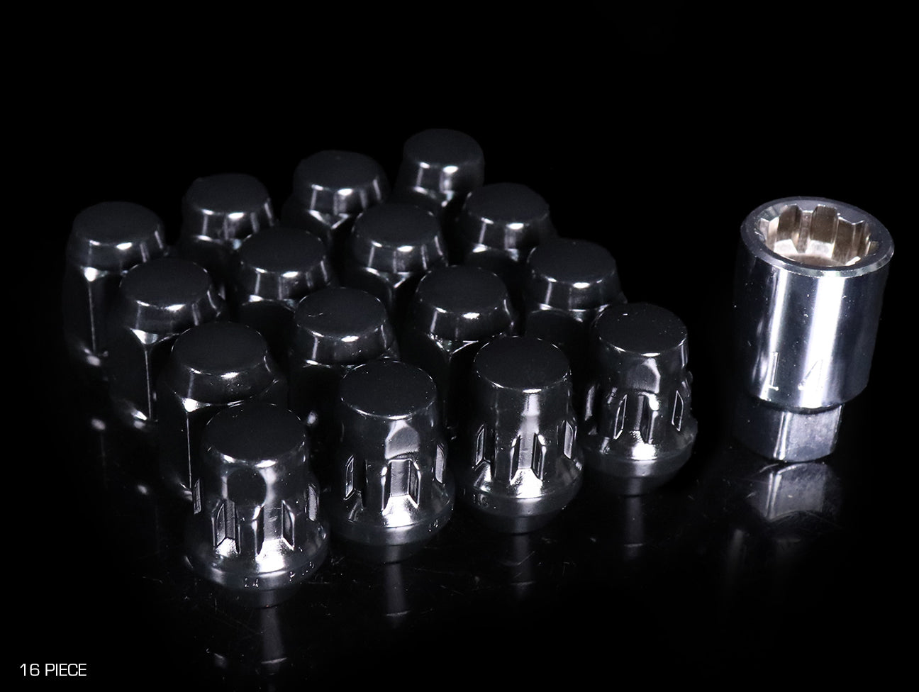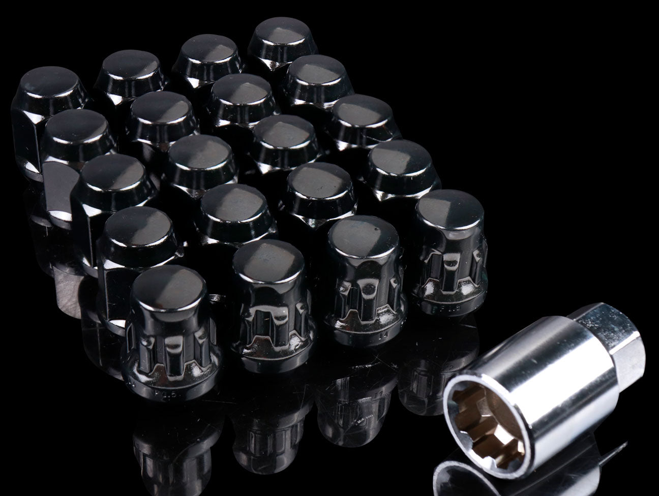 Keep your wheels safe with this Mugen locking lug nut set. Available for 4-hole or 5-hole wheels and finished in black. All sets include 1 lock style nut for each wheel, and tool for removal. The lug nuts are for use with Mugen or other compatible straight-taper seat wheels, and are not for use with factory Honda wheels.