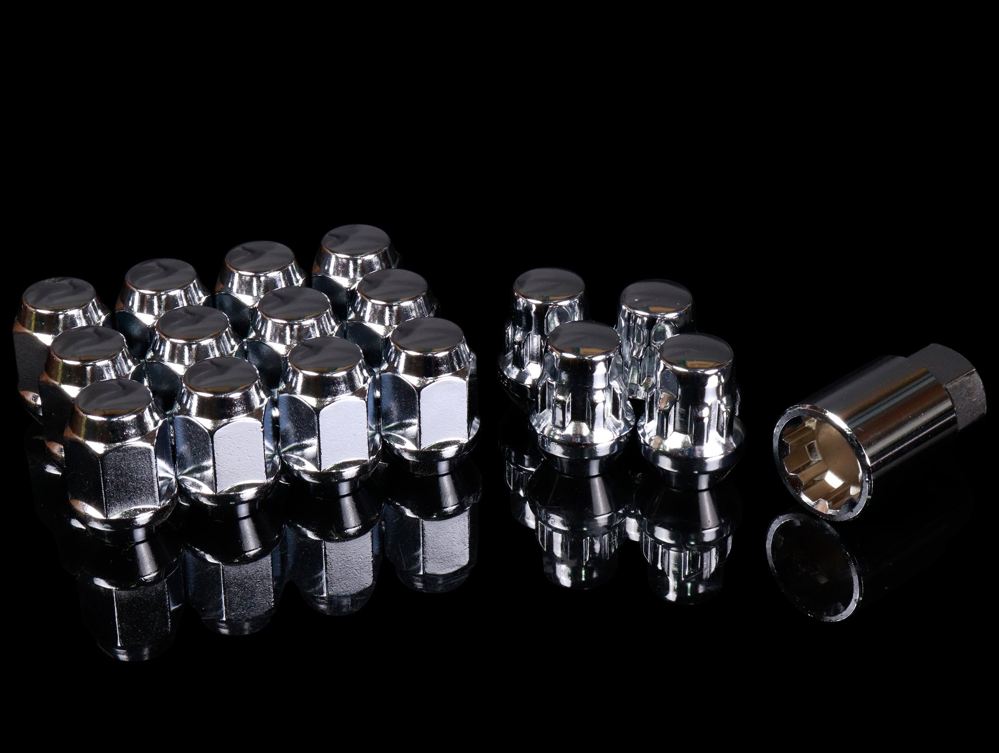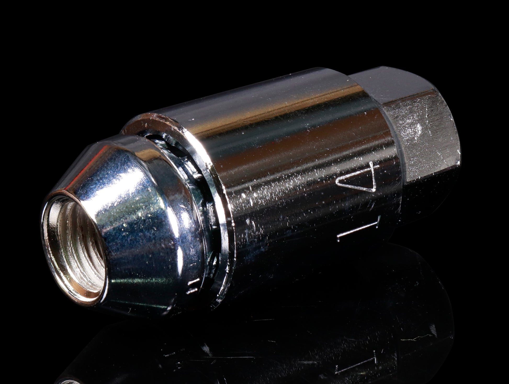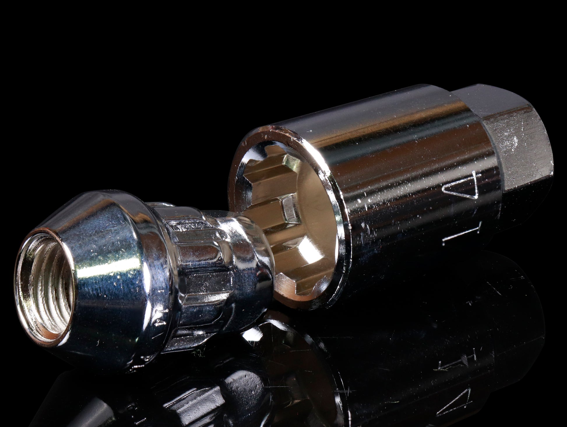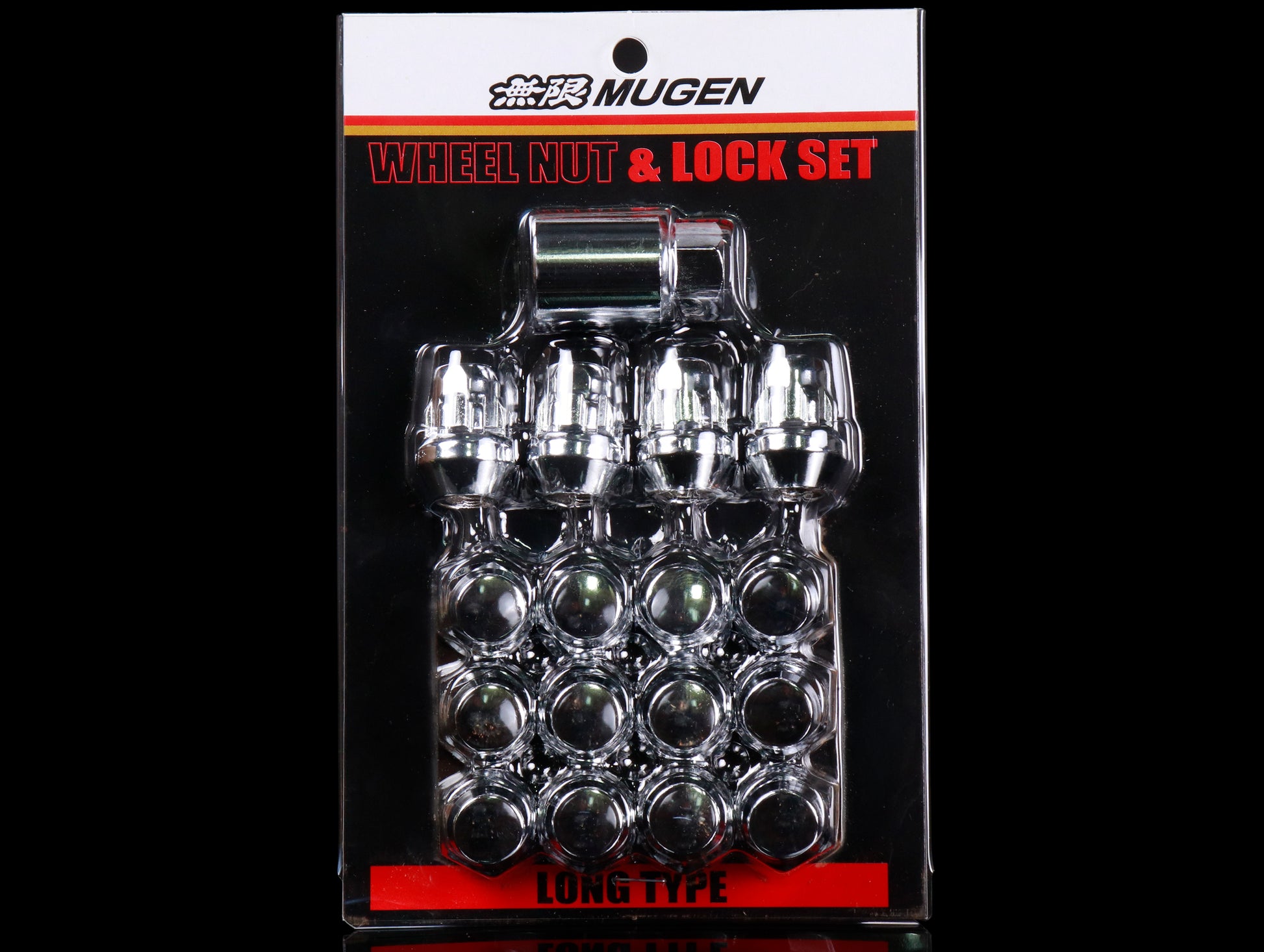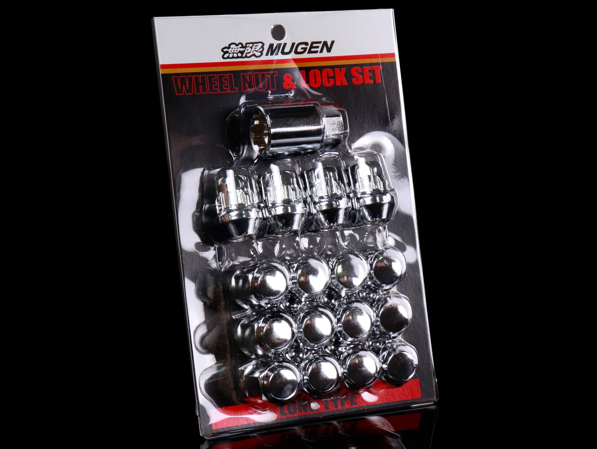 Keep your wheels safe with this Mugen Locking Lug Nut Set. Available for 4-hole or 5-hole wheels, and finished in either chrome or black. All sets include 1 lock style nut for each wheel, and tool for removal. The lug nuts are for use with Mugen or other compatible straight-taper seat wheels, and are not for use with factory Honda wheels.