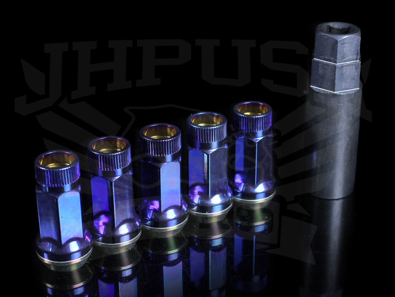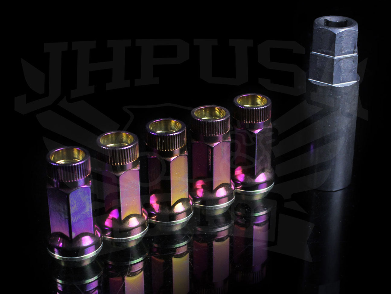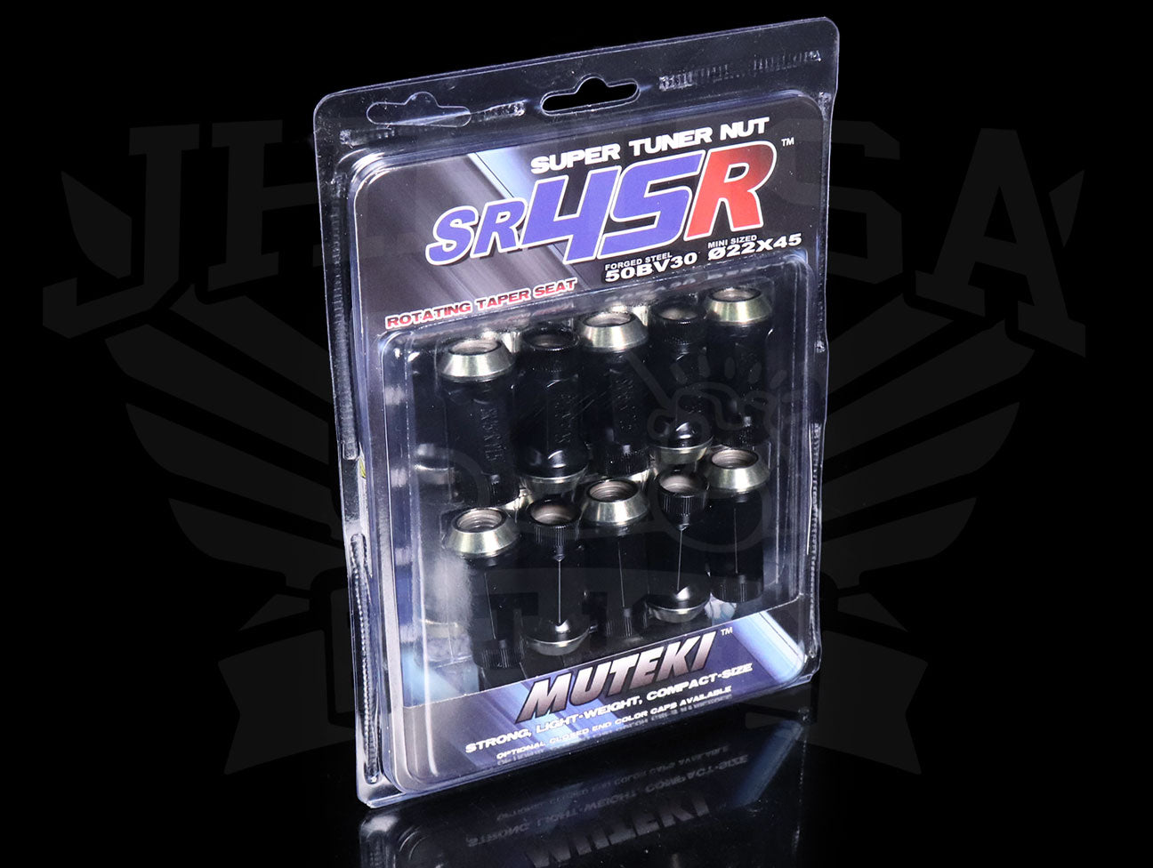 The OEM quality construction of the SR45R lug comes from the use of Cold Forged 50BV30 Steel construction and a oversized 60 degree cone seat for better contact on your wheels. Current available color is Black, Burned Blue Neon and Burned Titanium. Give your car the high end details it deserves with the all new Muteki SR45R lug nuts.