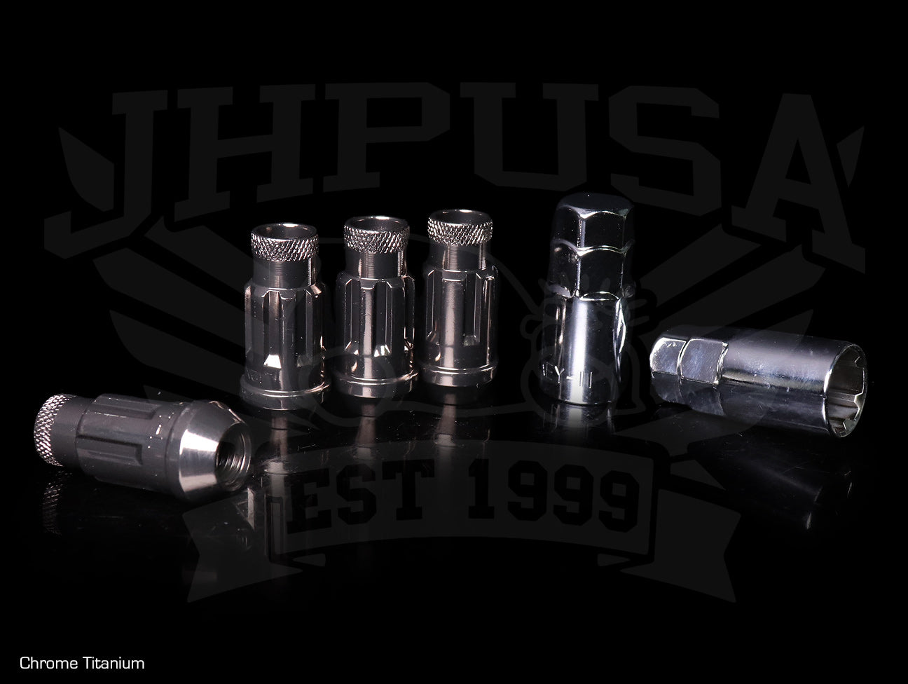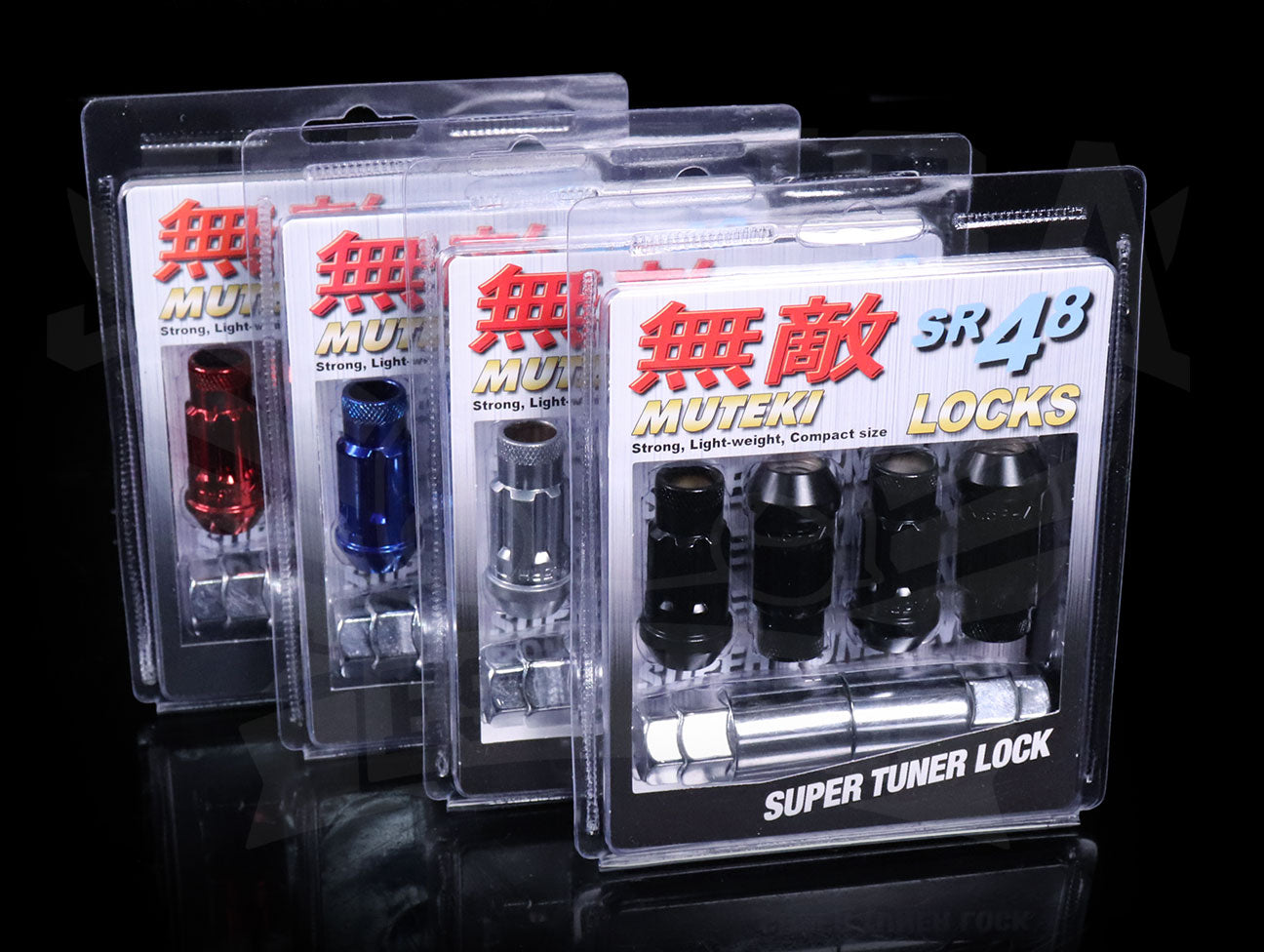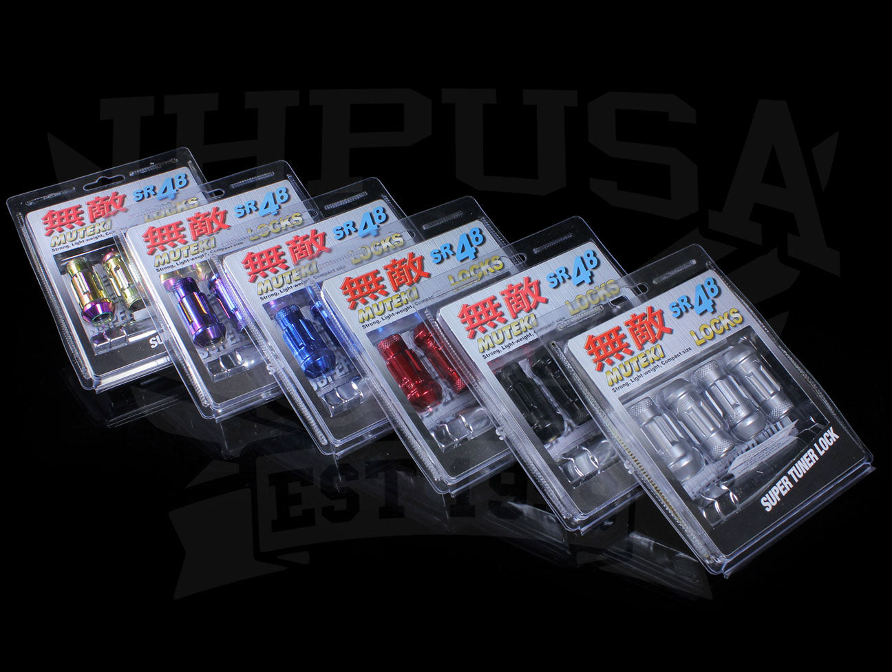The latest lug nuts from Wheelmate of Japan, the SR48 Lock nuts come in a set of 4 with 2 key adapters. Made of durable chrome vanadium, each lug weighs in at a mere 2 oz! They're also open ended, making them easily adaptable for short or extended wheel stud usage.