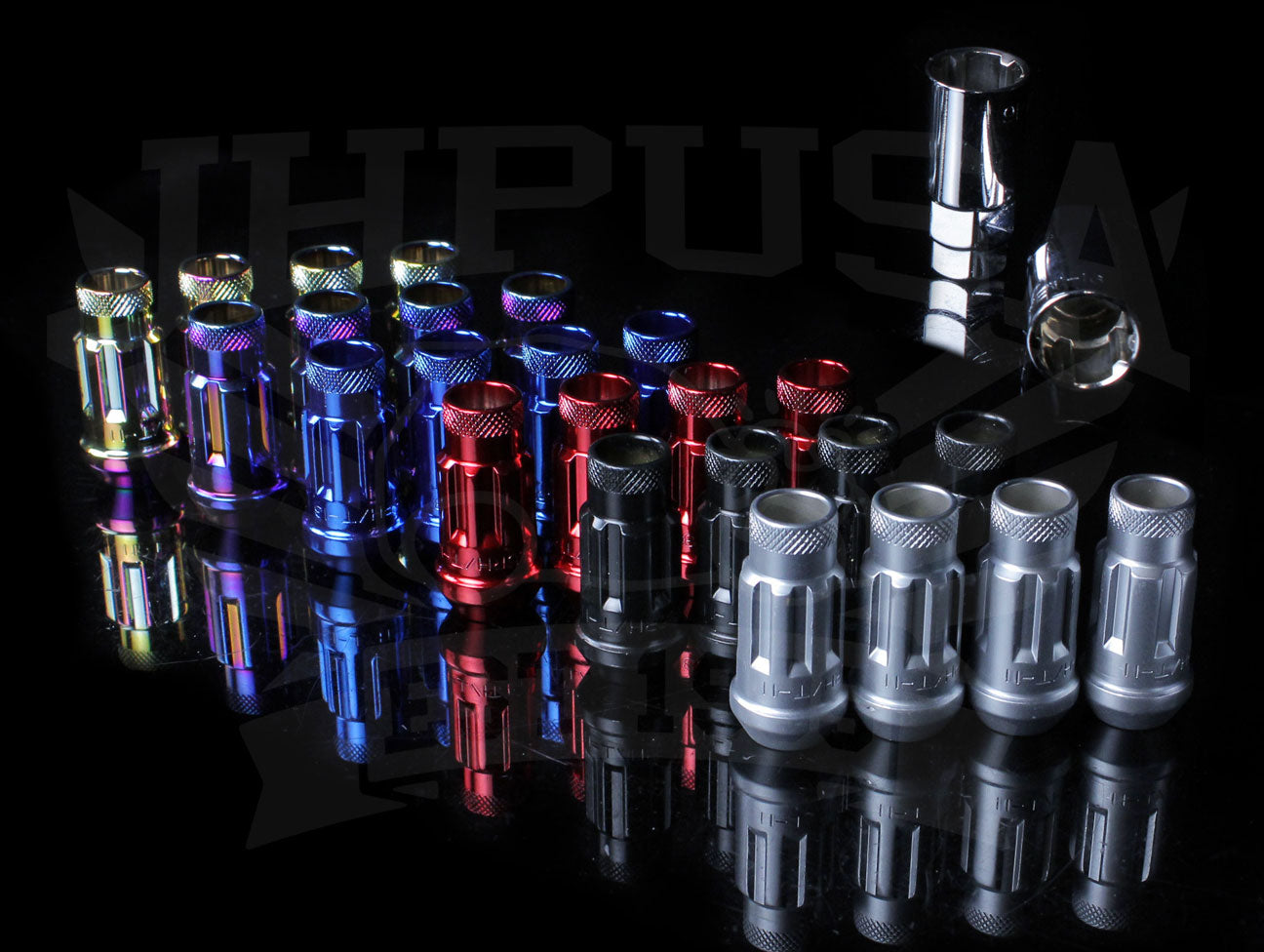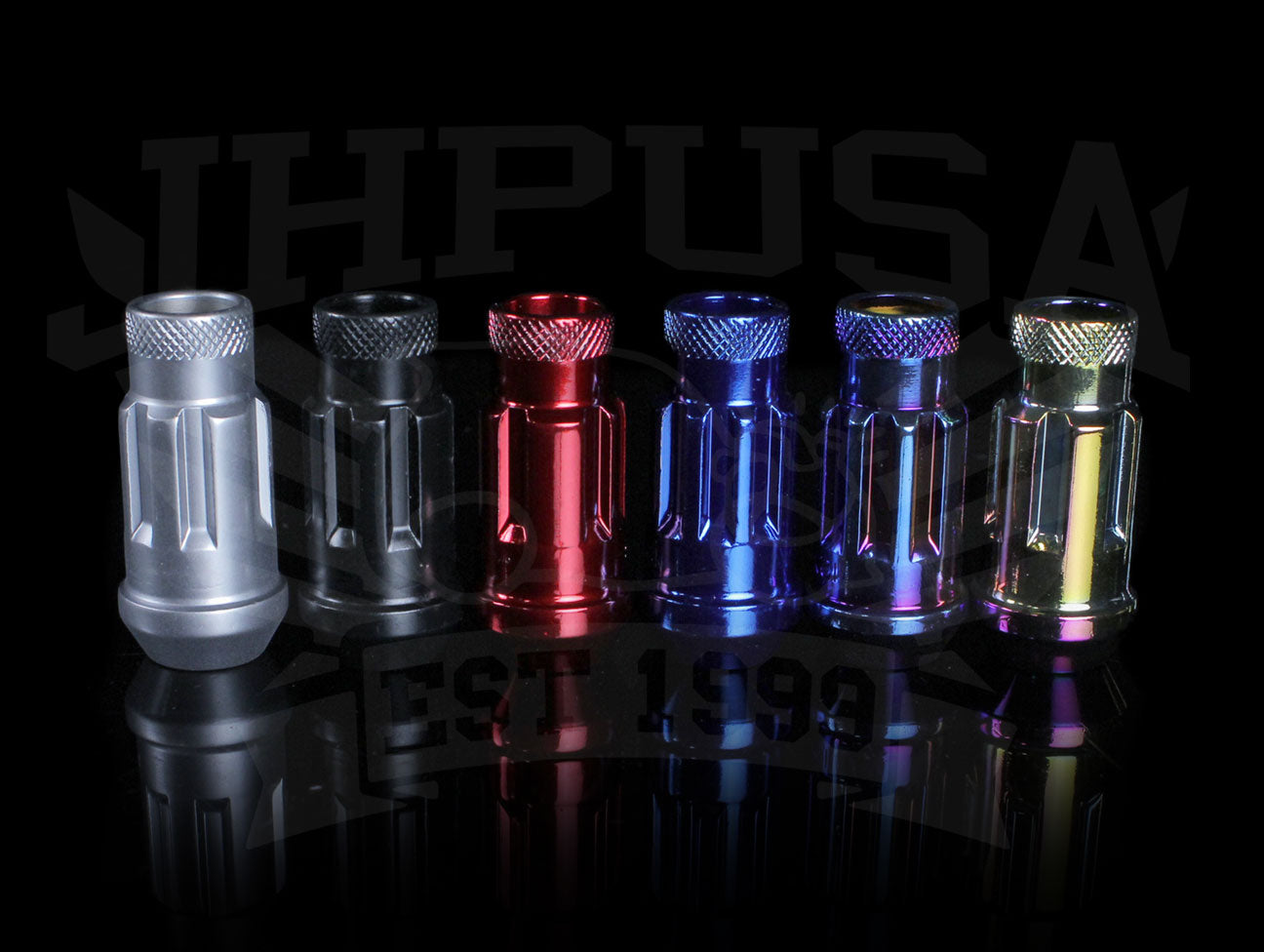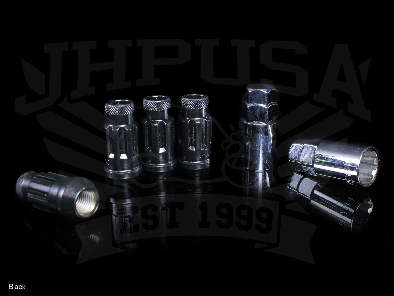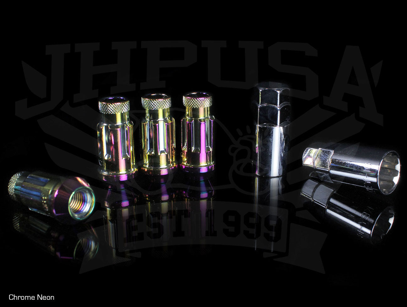 The latest lug nuts from Wheelmate of Japan, the SR48 Lock nuts come in a set of 4 with 2 key adapters. Made of durable chrome vanadium, each lug weighs in at a mere 2 oz! They're also open ended, making them easily adaptable for short or extended wheel stud usage.