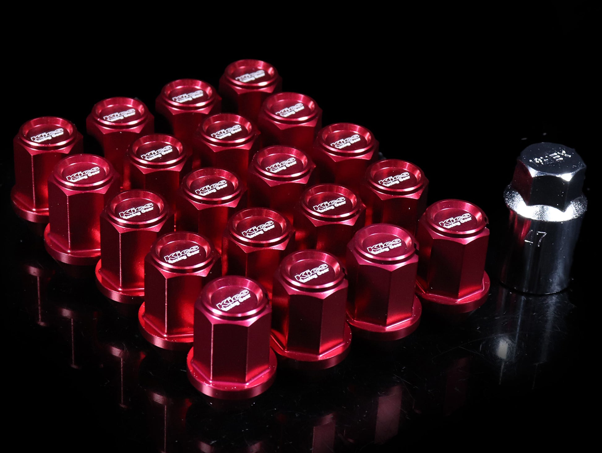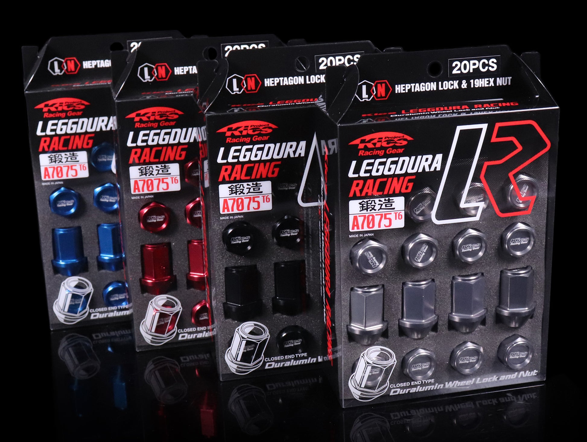 The Project Kics Leggdura Lug Nut in M12x1.25 thread pitche is nearly equal in weight as the typical aluminum nut yet, with its duralumin construction, is as tough as OEM. These Leggdura Lug Nuts are closed ended and anodized colors for a finished appearance. All Leggdura Lug Nuts are sold in sets of 20 consisting of 16 standard 17mm hex lugs with 4 locking lugs.