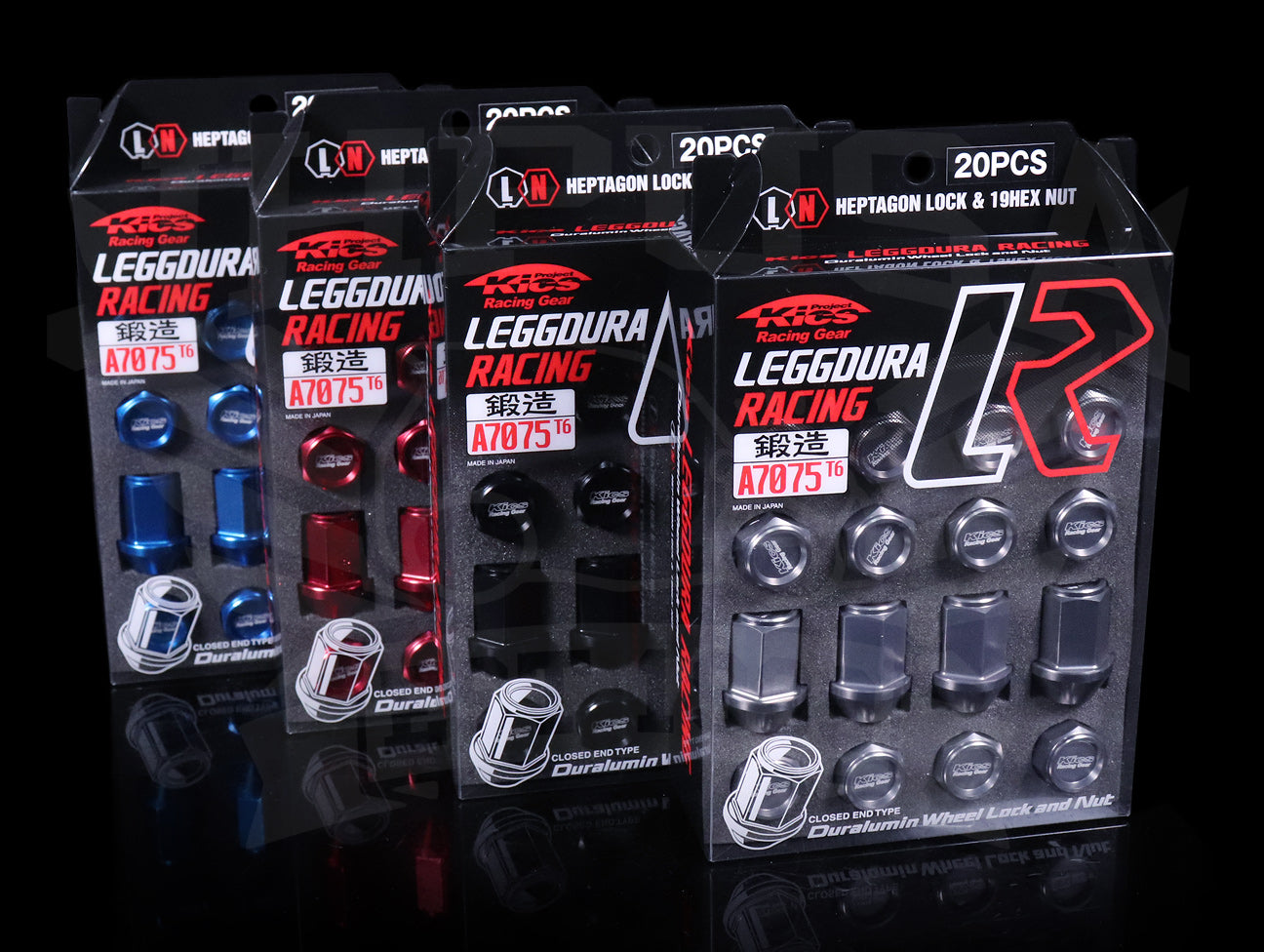 The Project Kics Leggdura Lug Nut in M12x1.50 thread pitche is nearly equal in weight as the typical aluminum nut yet, with its duralumin construction, is as tough as OEM. These Leggdura Lug Nuts are closed ended and anodized colors for a finished appearance. All Leggdura Lug Nuts are sold in sets of 20 consisting of 16 standard 17mm hex lugs with 4 locking lugs.