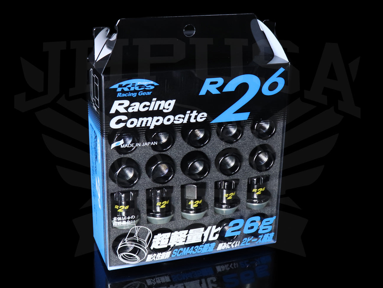 Kics Project R26 "Shorty" Lock & Lug Nuts. Kics Project Racing Nut Composite features super light-weight thin-wall construction using strong light-weight OEM quality materials. Kics Project designed to ensure best contact with oversized and taper seated. Using the standard 17mm hex key for easy installation. With Kics Project’s innovative design full stud engagement and can accommodate long racing studs.