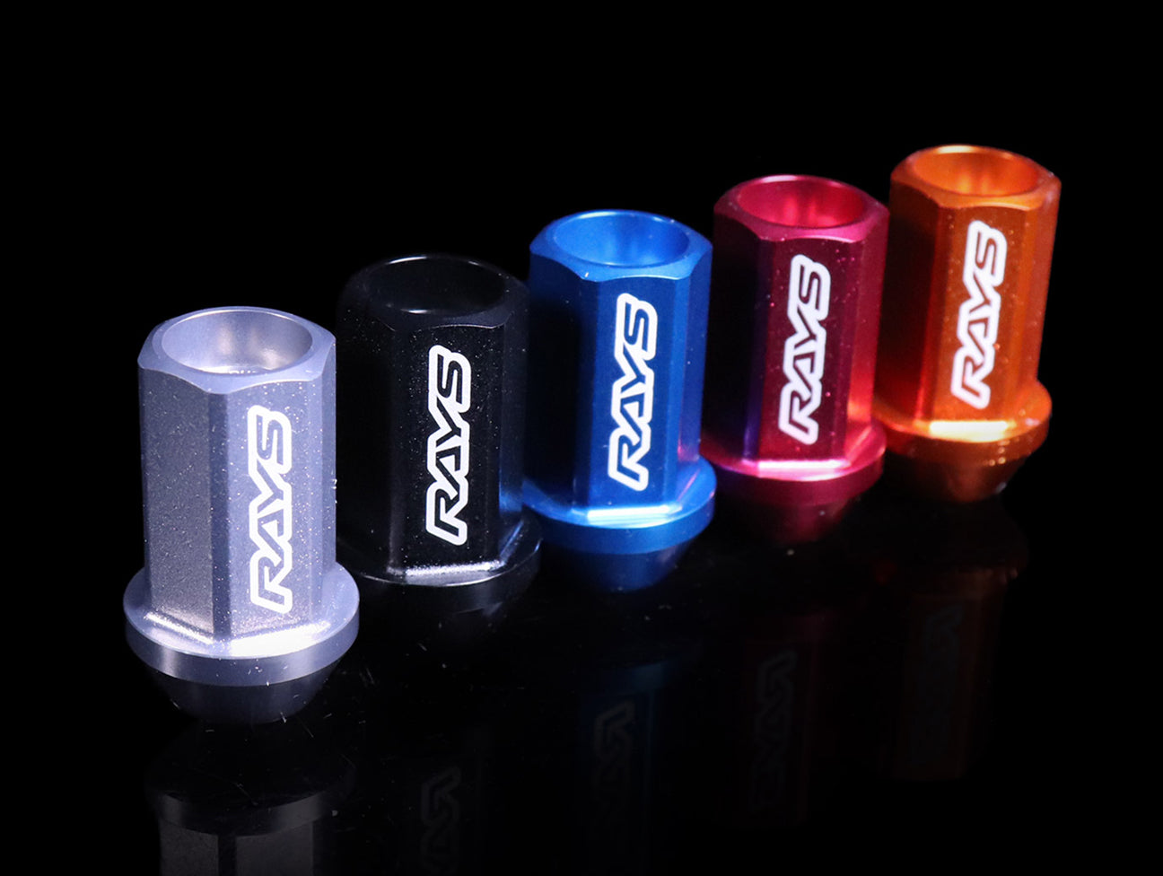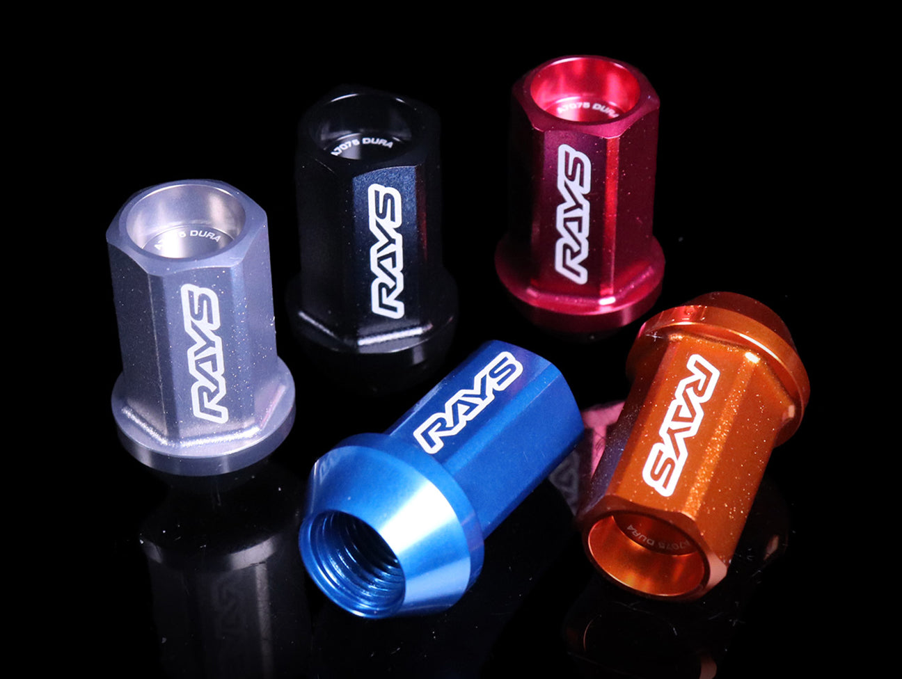 Rays Engineering L42 Dura-Nuts straight type lock & nut set are extended for quick and easy installation and removal. Made from Duraluminum, these lug nuts are extremely strong and light. In addition to the performance aspects, the Rays lug nuts also feature an internally capped end. Locks feature a 7-sided nuts with accompanying key.