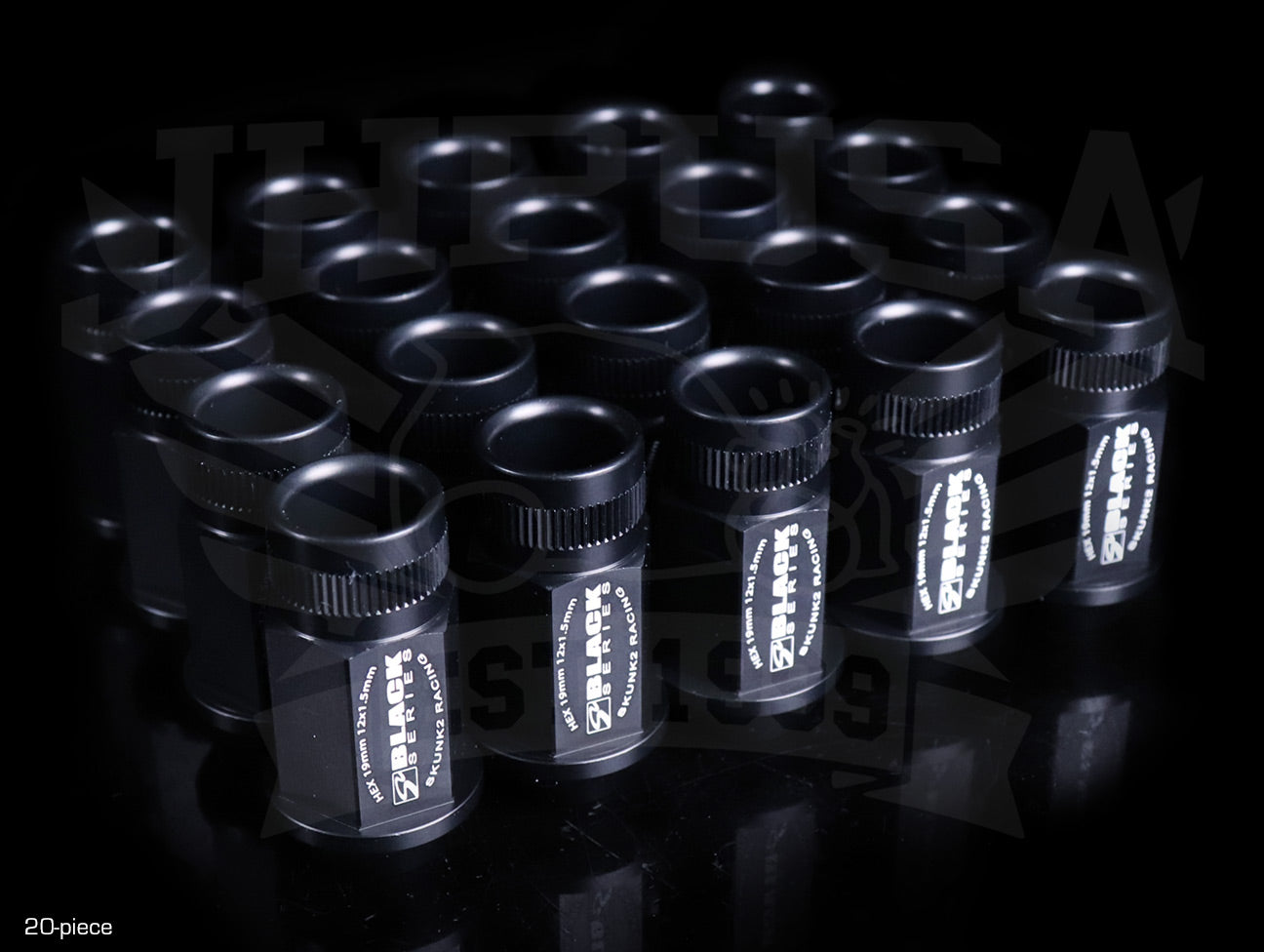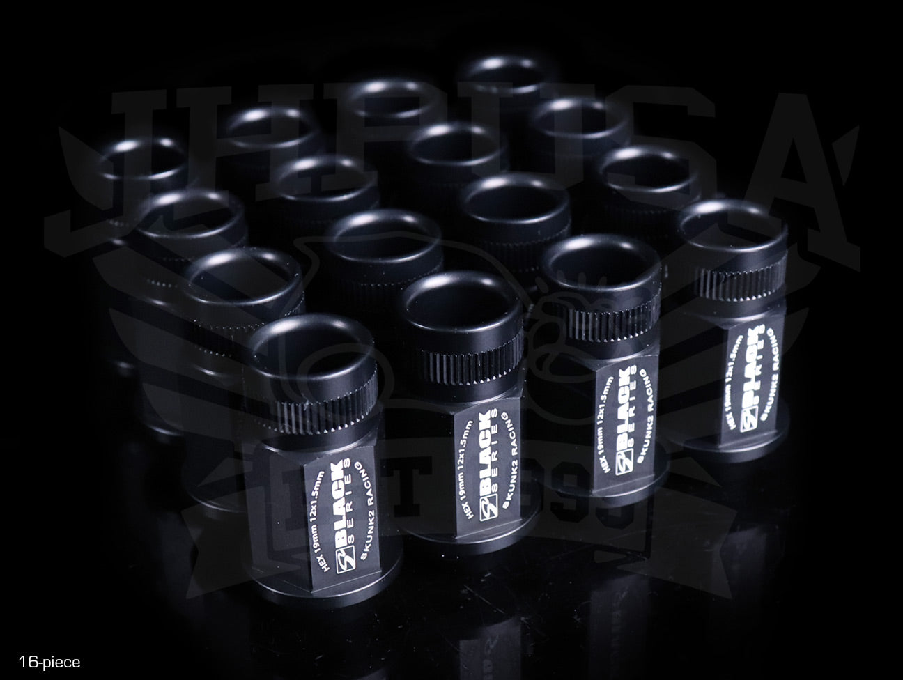 Skunk2’s already popular, forged aluminum Lug Nuts are now available in an exclusive Black Series finish. Forged from ultra-strong 7075 aluminum, Skunk2 Lug Nuts feature knurled ends for maximum grip, hard anodizing for superior corrosion resistance, and an attractive matte finish.