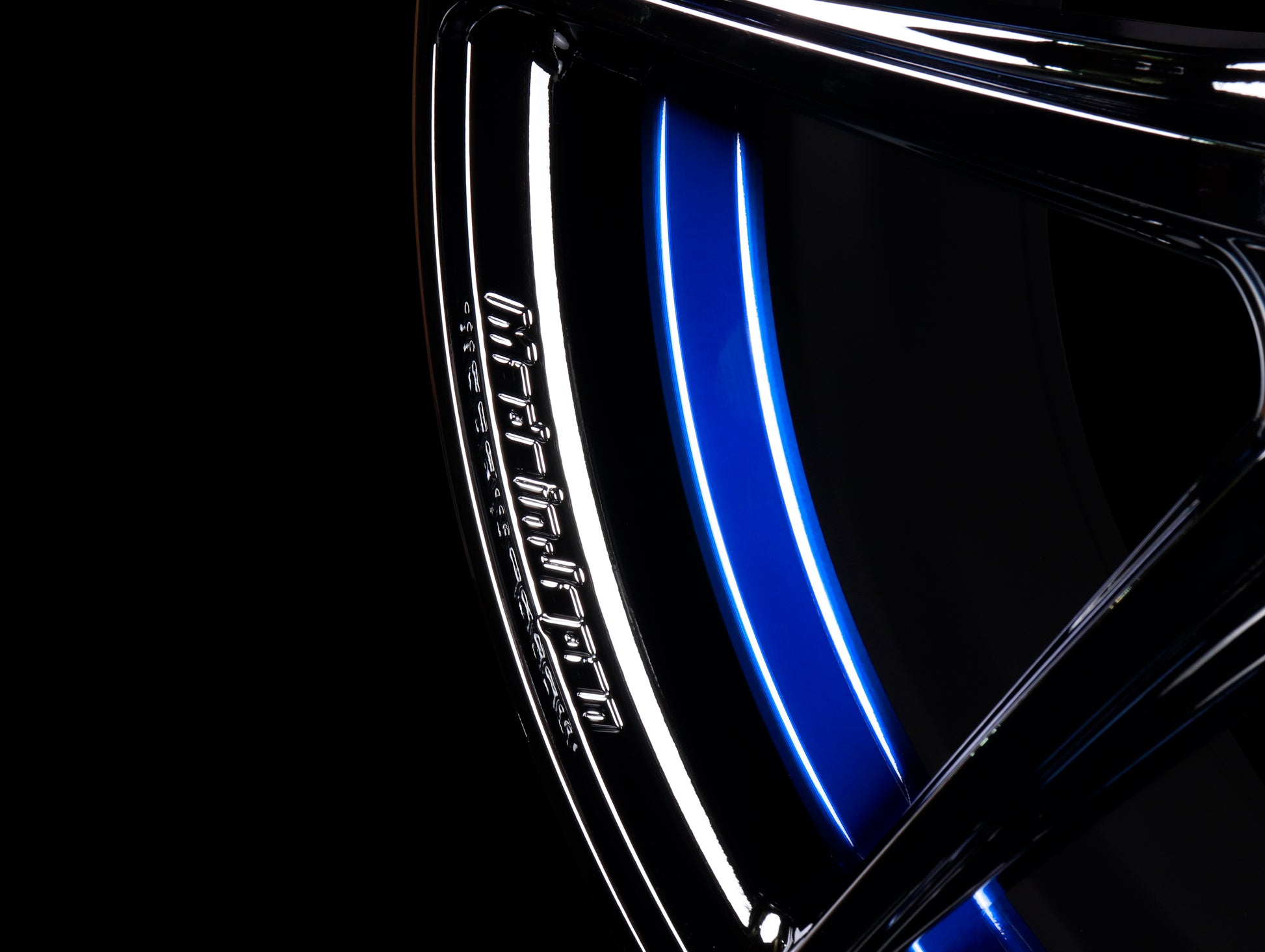 The 18-inch model incorporates the 3 FACE TYPE design. Its disc-shaped concave design contributes to a dynamic, sporty aesthetic. The undercut feature is lightweight, and the brand’s signature blue (BLC II) adds a bold touch. A MID-type cap comes as a standard accessory, accentuating the drop in the center section.