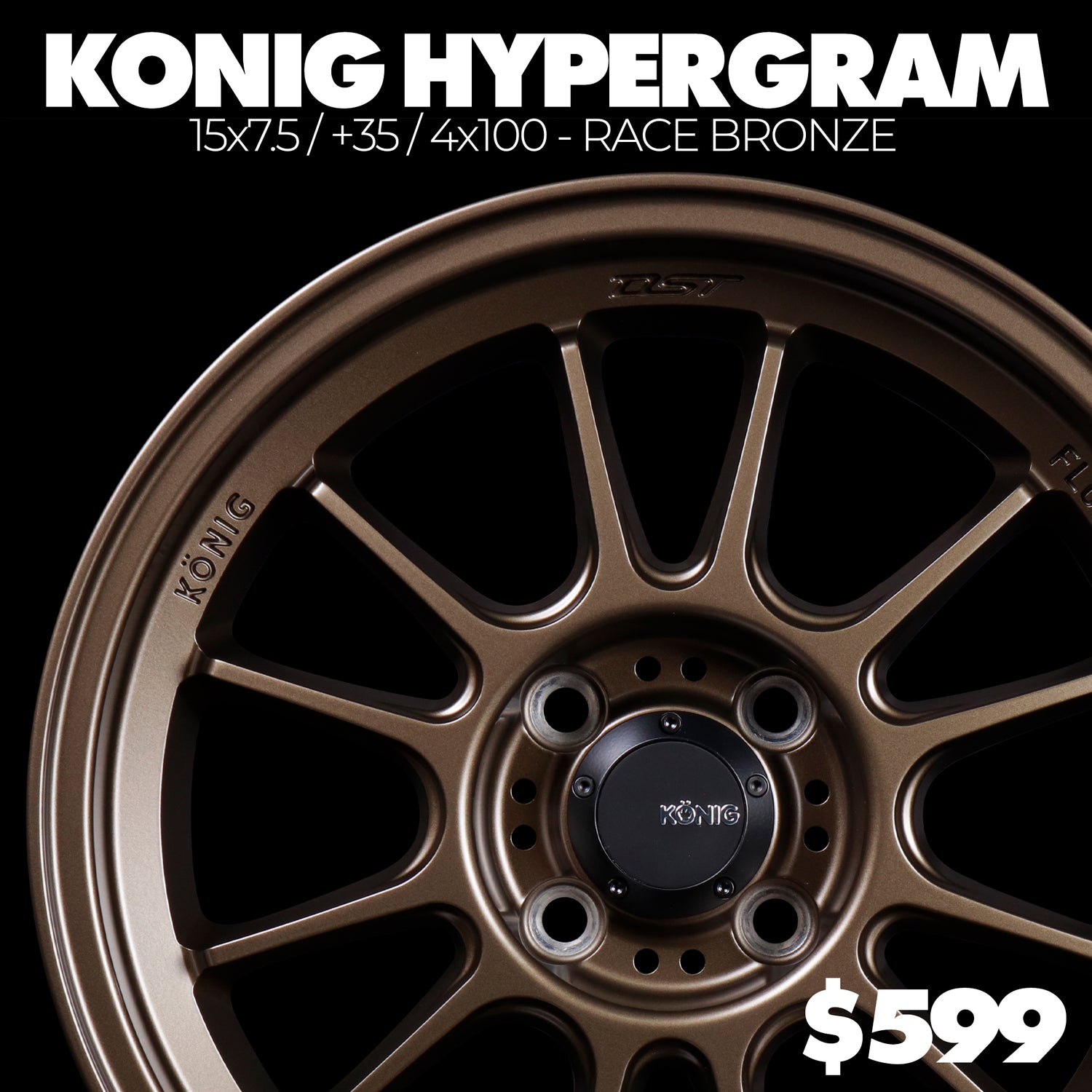 Regular price $529.99Regular priceUnit price / per$795.95Sale price $529.99Konig Hypergram - 15x7.5 / 4x100 / +35