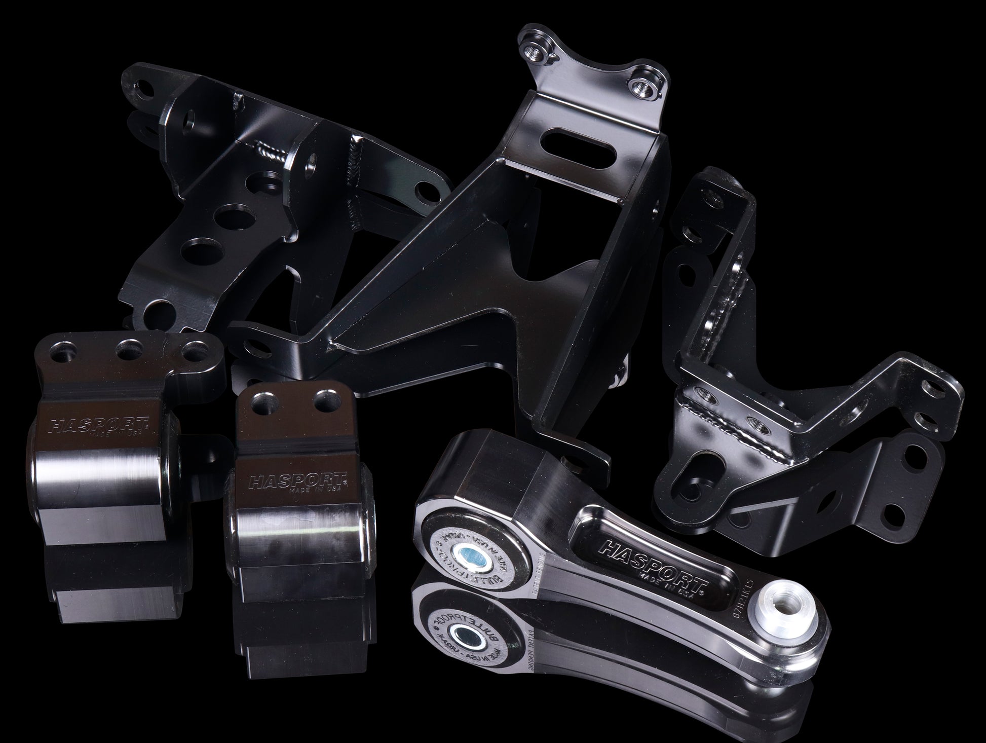 Hasport Performance Black Billet mount kit for the 2022 and up Civic or new Integra. For Civics with L15B7 and manual transmission. This kit replaces the stock left, right and rear mounts.