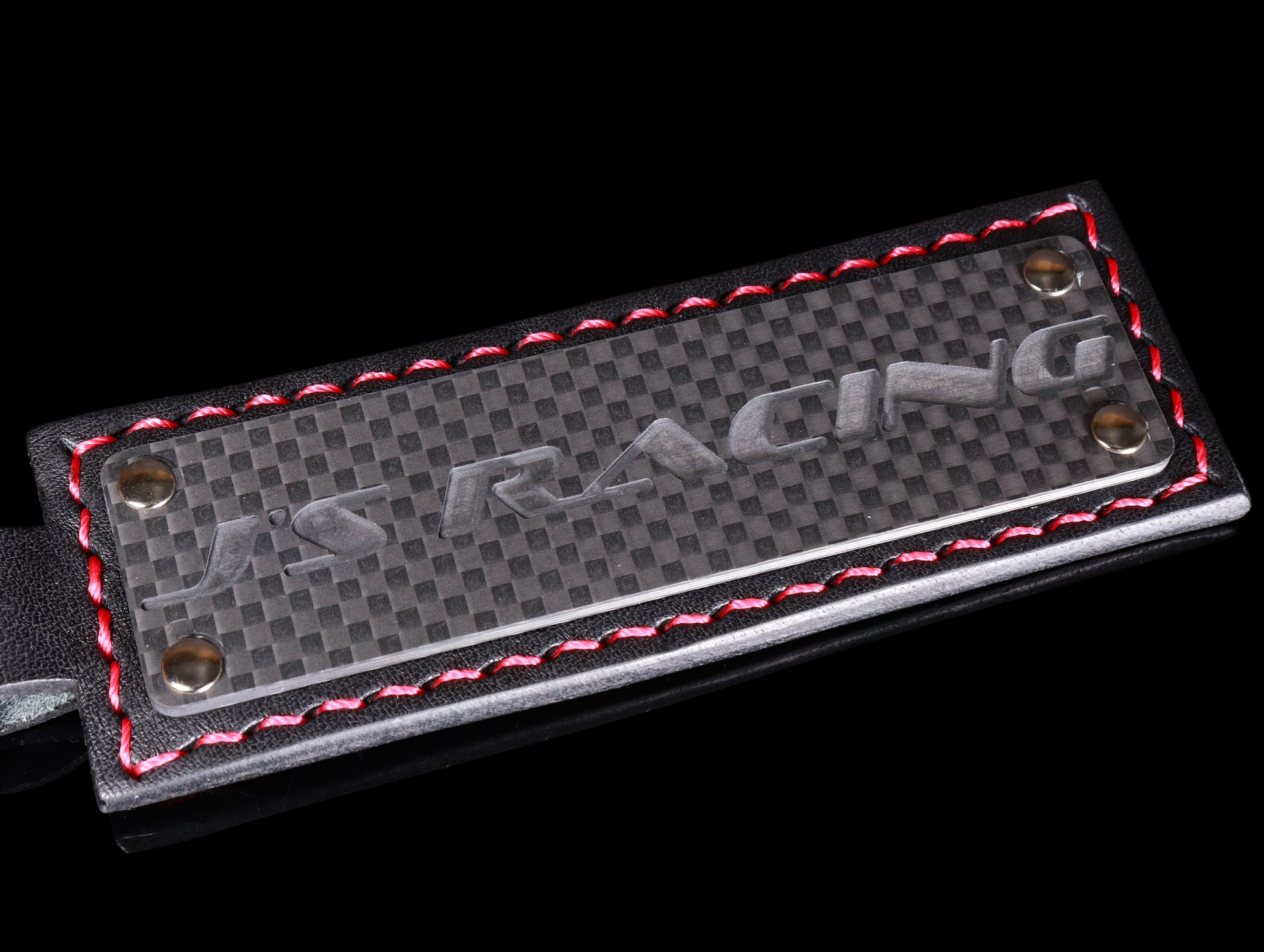 Introducing a dry carbon genuine leather key holder! A bold design with the J's Racing logo machined onto a dry carbon plate. It comes with a convenient ring for keys and a large, stylish snap hook for attaching it to your waist or bag. This keychain is handmade with genuine leather, combined with real dry carbon.