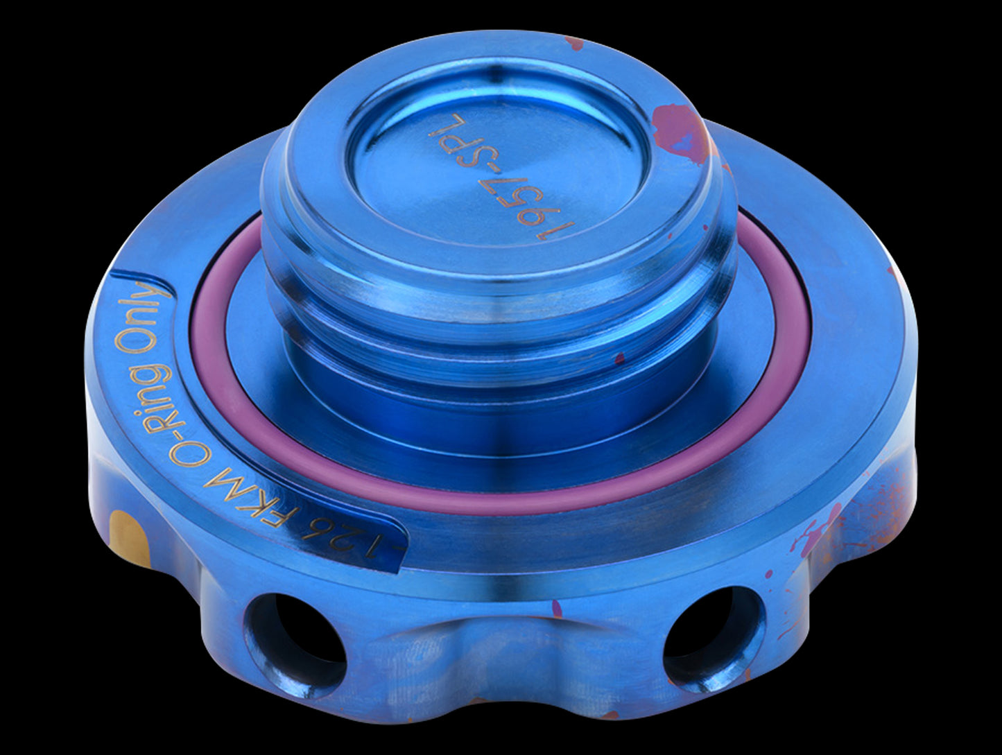 • Titanium has 95% lower thermal conductivity and 40% lower heat capacity when compared to aluminum, making Titanium oil caps more forgiving than aluminum when handled while hot