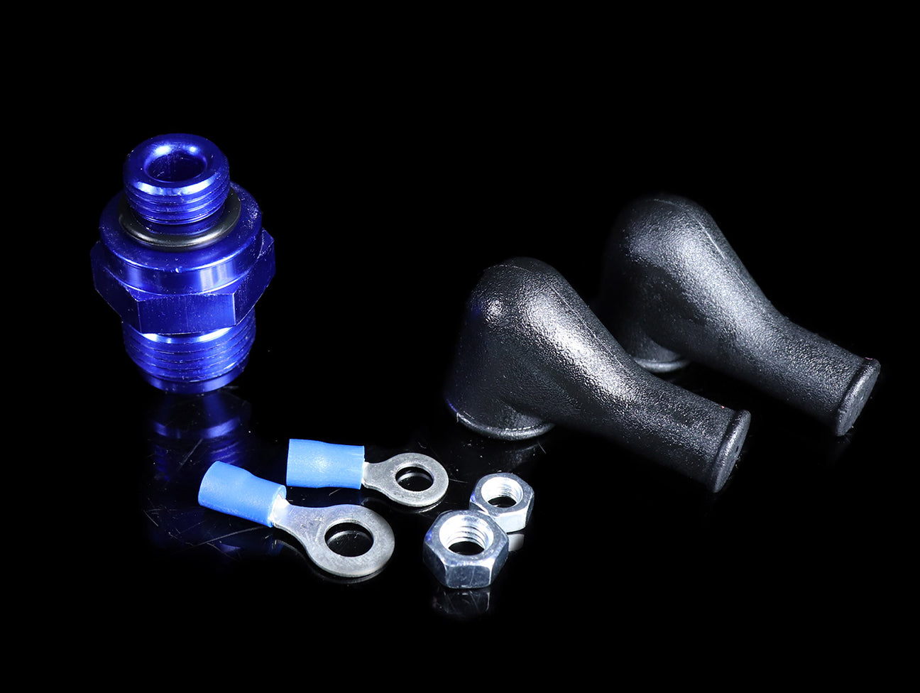 - Kit includes fuel pump, -6 to -8 male AN discharge fitting with check valve, terminal nuts & boots, instructions