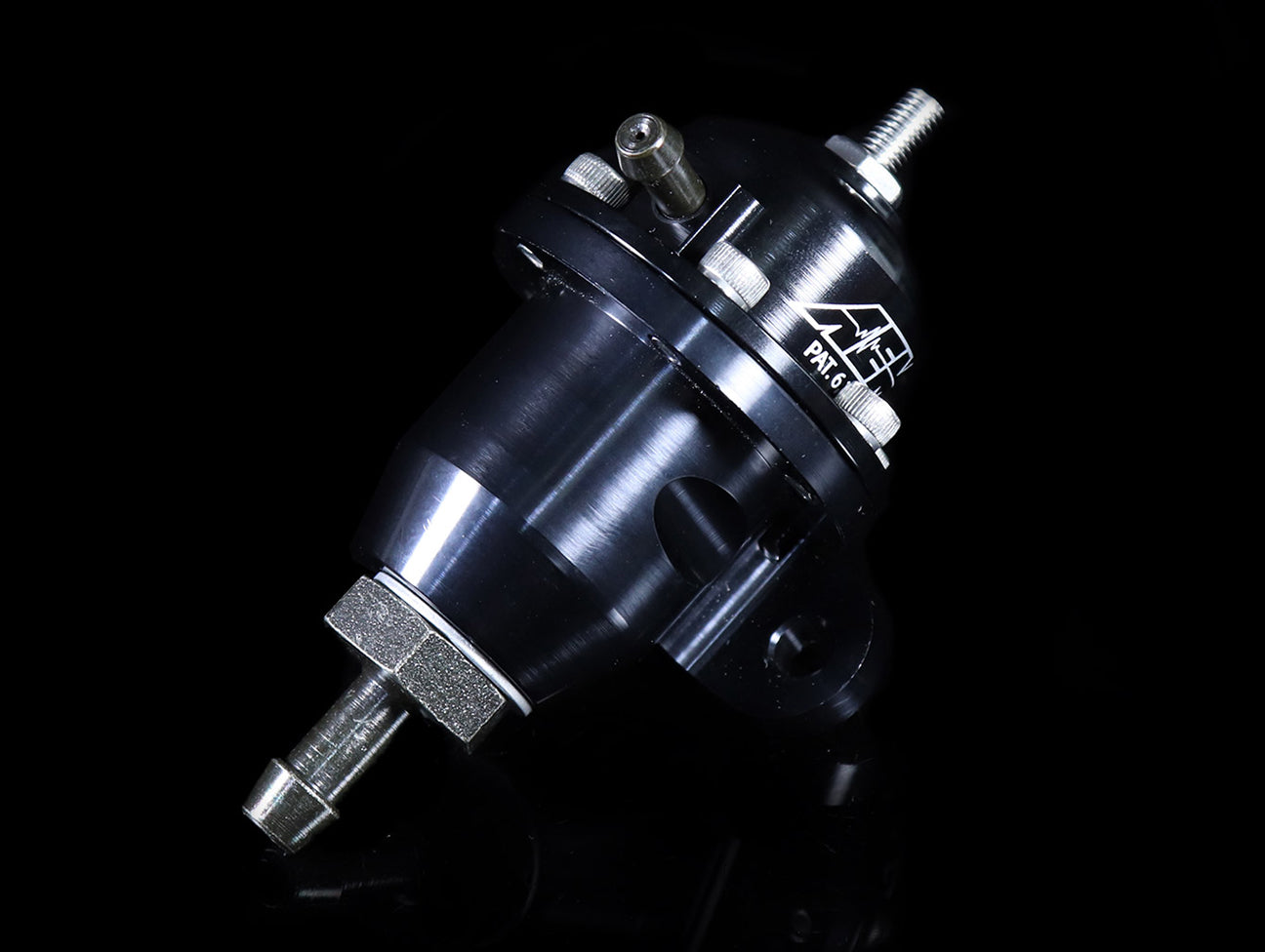 AEM includes a custom barb fitting to accommodate the factory fuel hose, and the base of the regulator is tapped to accept a -6 AN fitting. Please note this is a fuel rail mounted FPR and not a stand alone universal FPR.