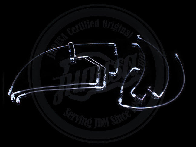 This kit has options for hard line or soft line in the engine bay, and only a soft line option behind the firewall. This kit is as easy as it can get to give your brake lines the "tucked" look. The installer only is required to drill holes for the bulkheads, and flare the 2 rear lines.