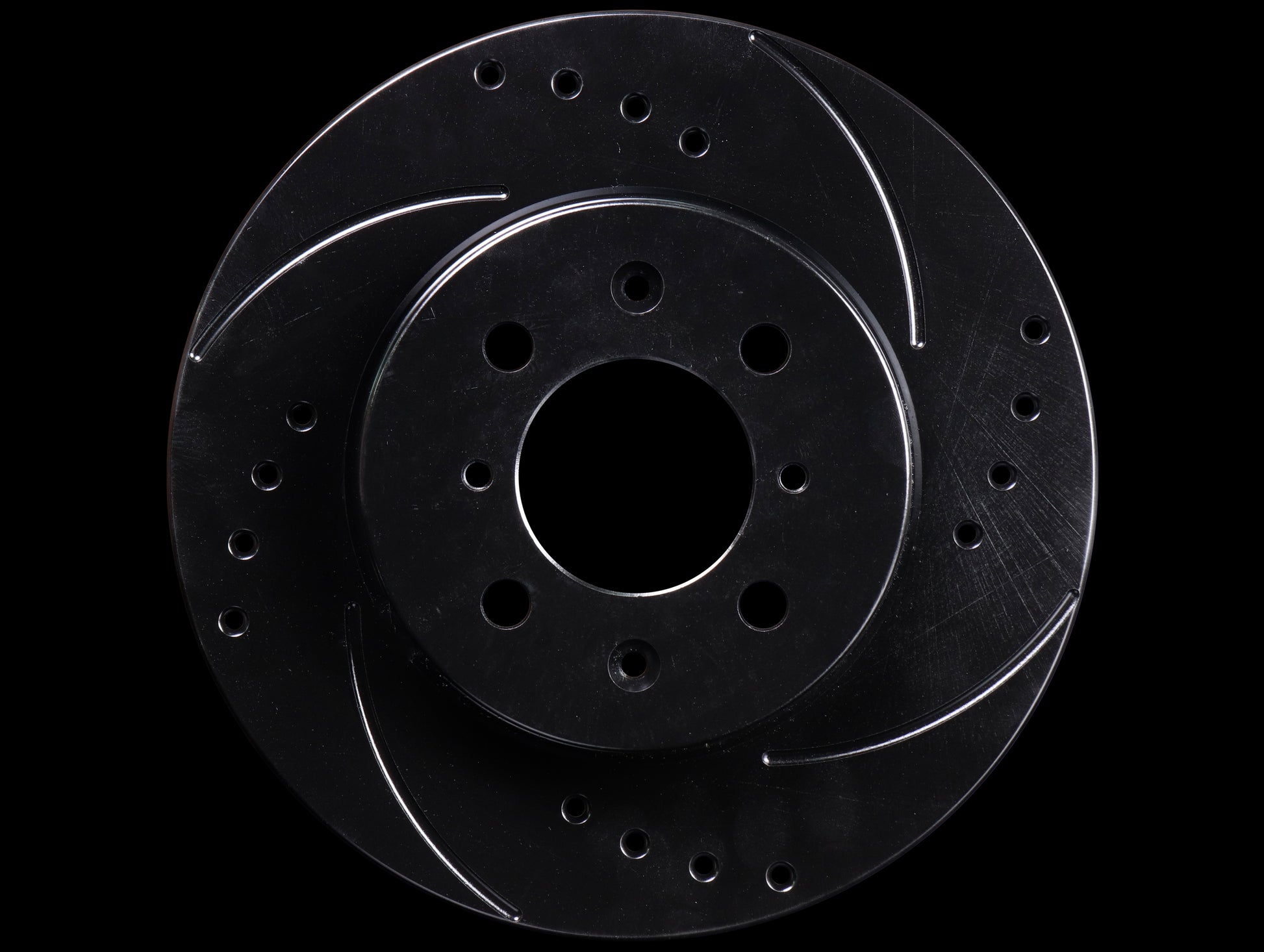 • Directional Curved Slots - Slots helps increase pad bite, improves air circulation and cooling. The slots also help vent gasses, reduce brake fade and stop brake hydroplaning in wet weather reducing stopping distances.