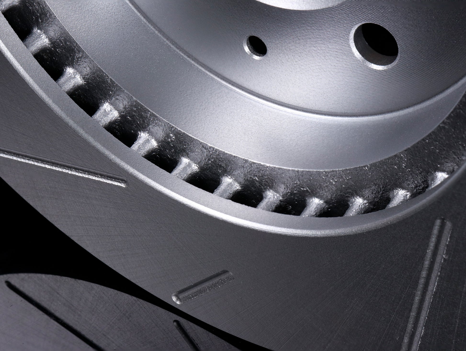 Slotted brake rotors are used to move unwanted material and gasses away from the brake rotor and brake pad surfaces. Gasses are created by the repeated use of heavy braking, which causes a layer of brake dust and gasses to build up between the brake pad surface and the brake rotor surface. This will push the the brake pad away from the rotor surface. By adding slots to the surfaces of the brake rotor, those gasses are allowed to escape. This will creates a solid bite between the brake pad to brake rotor. As the gasses escape, the brake rotor and pad surface stay cooler, helping to eliminate brake fade.