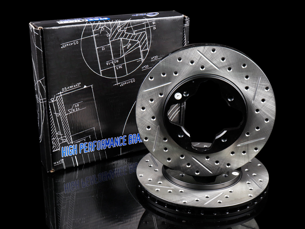 These brake rotors deliver an aggressive initial bite with excellent consistency, even in wet weather. Don't put up with poor factory rotors; you'll run cooler with an improved braking performance and enhanced appearance from SportStop drilled and slotted brake rotors.
