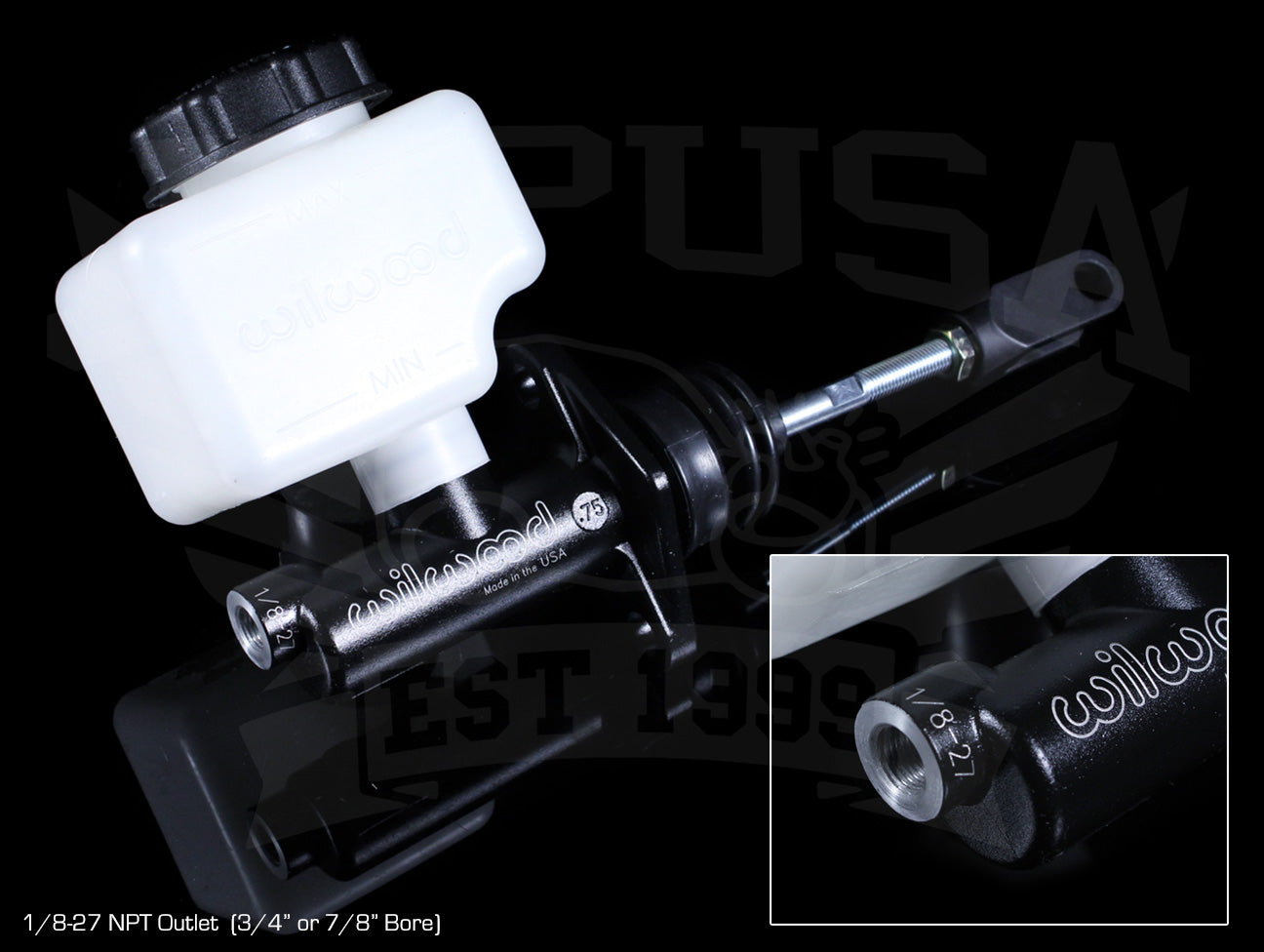 Wilwood’s Compact Combination Master Cylinders have been designed for limited space applications requiring the output capacity of a full size master cylinder. The ultra short 3.37”compact body provides 2.16” of additional clearance between the mounting flange and the fluid outlet. A full 1.12” of piston stroke meets or exceeds the stroke capacity of most full size cylinders. With 1/8” NPT fluid outlet port located at the top radius of the cylinder bore, reduces the chances for trapped air. The black E-Coated aluminum body resists corrosion and maintains a durable long lasting finish.