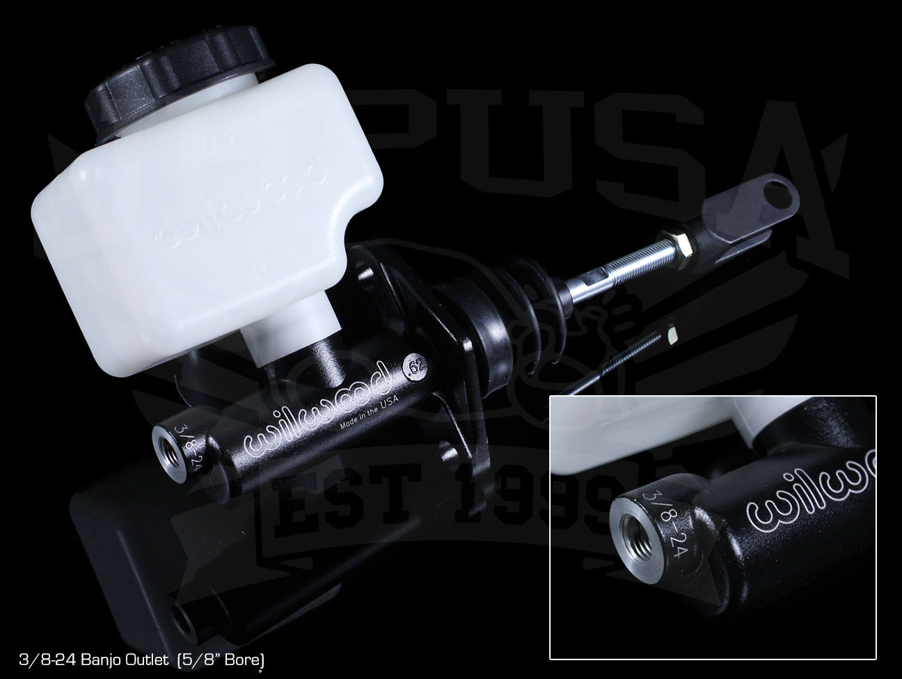 This new version of Wilwood’s Compact Combination Master Cylinders now features a 3/8-24 banjo outlet. Designed for limited space applications requiring the output capacity of a full size master cylinder. The ultra short 3.37”compact body provides 2.16” of additional clearance between the mounting flange and the fluid outlet. A full 1.12” of piston stroke meets or exceeds the stroke capacity of most full size cylinders. With 1/8” NPT fluid outlet port located at the top radius of the cylinder bore, reduces the chances for trapped air. Enhanced fluid inlet port allows mounting of the standard reservoir included in kit and also contains 11/16-20 internal threads for custom reservoir arrangements. The black E-Coated aluminum body resists corrosion and maintains a durable long lasting finish.