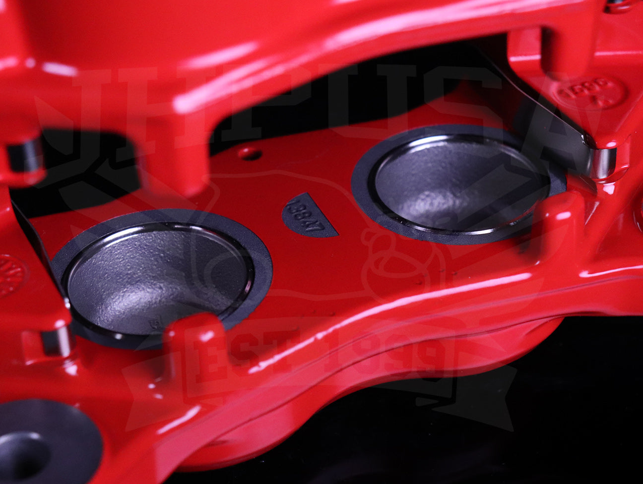 option color choice of black or red - 2 x two-piece 11" rotors w/billet anodized black hats