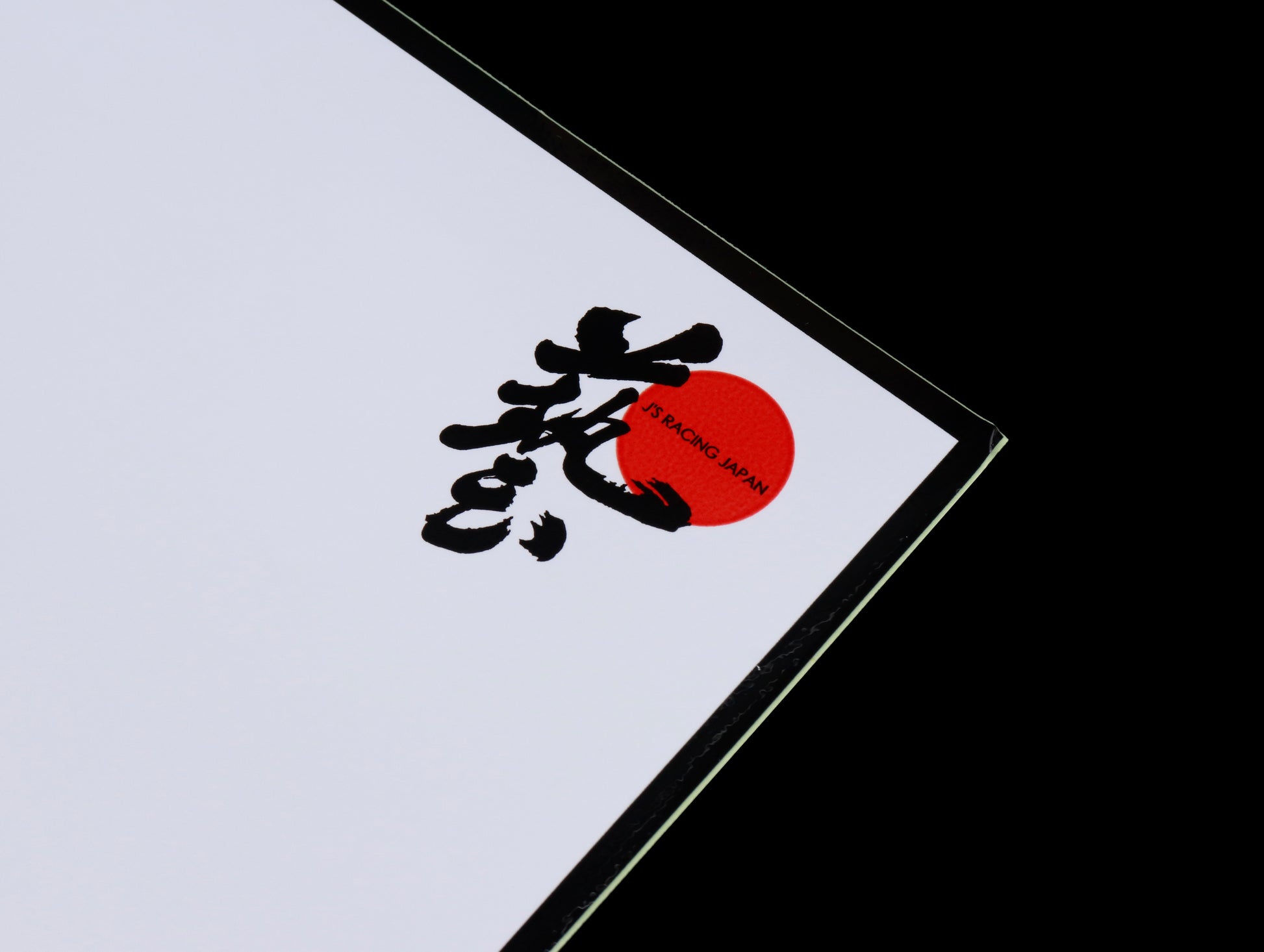 The J's Number Plate sticker is newly designed with the latest J’s Racing white logo and the infamous five word saying "Feel, Reveal, Waza, Energy, Satisfaction." It also has the famous “Waza” character in the top right corner. The white logo and the five red words appear brilliantly on the black background. For a track or competition event, it is great to have a number plate to display your number on, and these J's Racing number plates are sure to become another of your favorite products from J's Racing