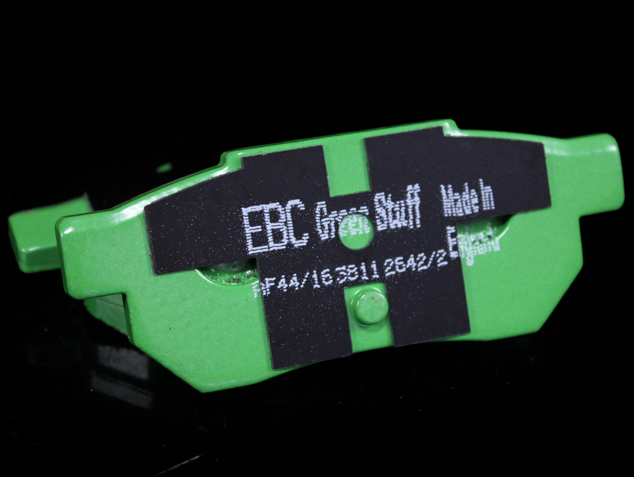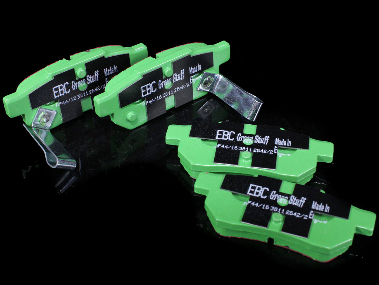 Equip your vehicle with EBC Green Stuff Brake Pads and experience hair-trigger pedal response! Green Stuff pads are formulated for everyday street use on sport compacts, muscle cars, premium sedans, and light trucks. These pads immediately clamp down as soon as they touch your vehicle's rotors. EBC Green Stuff Brake Pads are specially designed to deliver serious grip as soon as your foot touches the pedal, staying strong until your vehicle comes to a stop or you hit the gas.