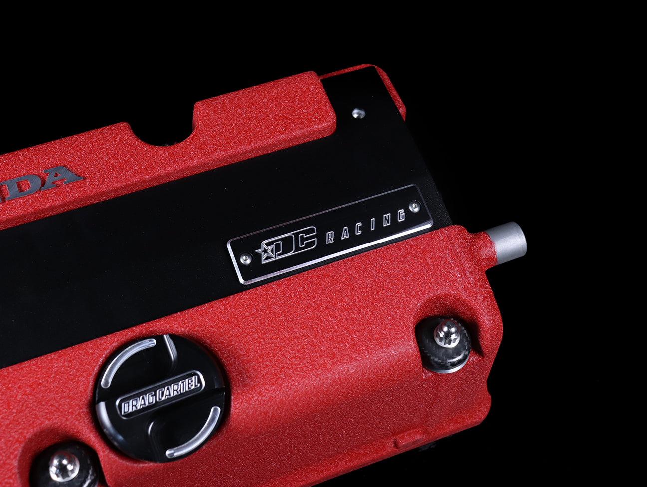 The Drag Cartel billet logo plate was designed as an add-on to the popular K-Tuned K-series coil pack cover.