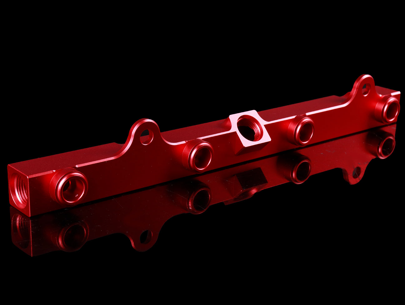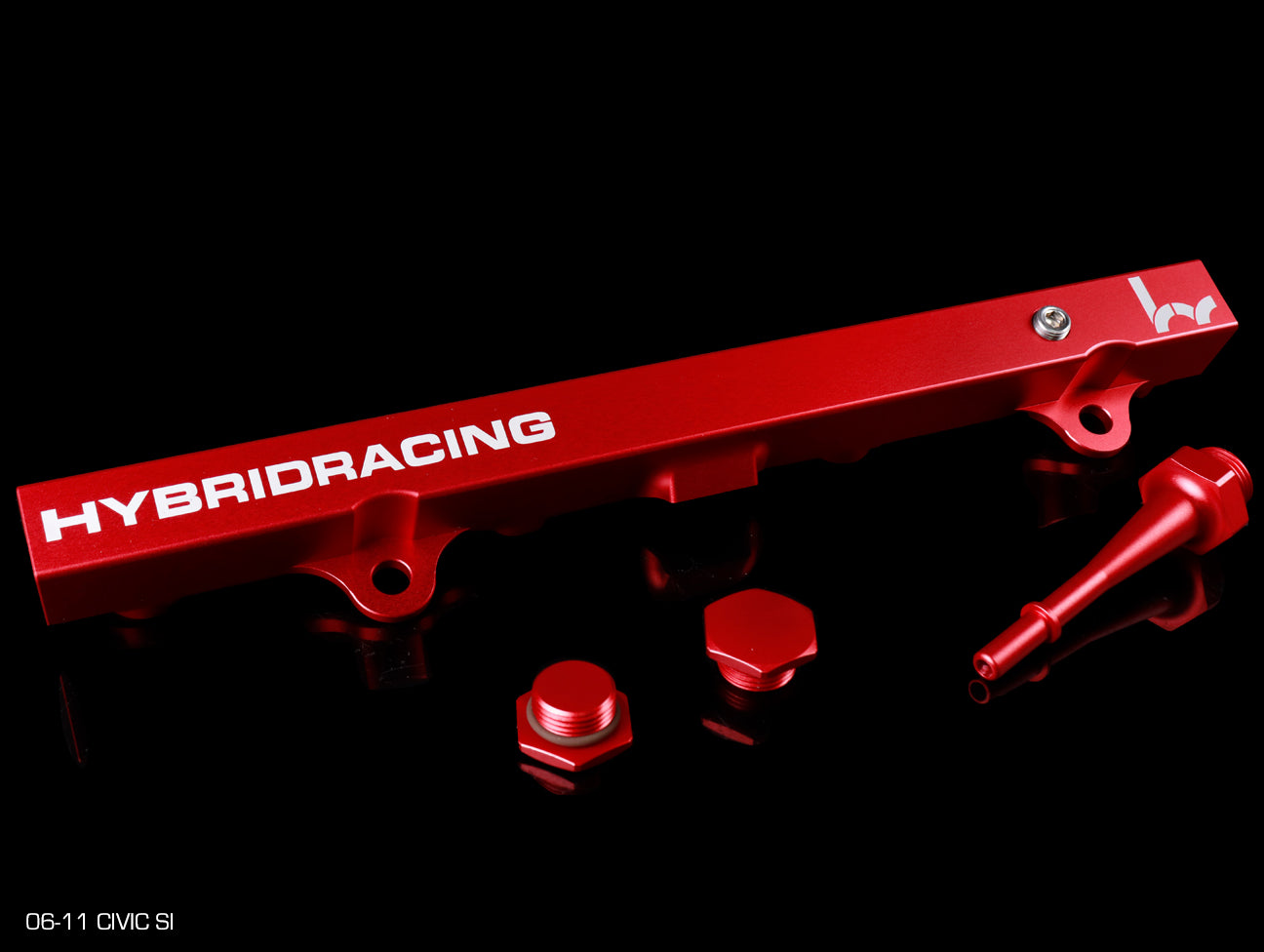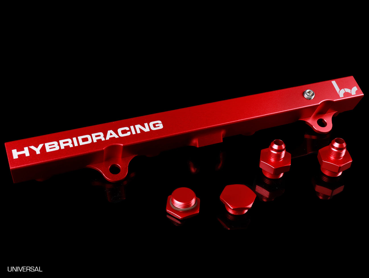 Hybrid Racing fuel rails are made from 6061 aluminum with T6 heat treatment and feature a durable anodized finish with a laser-etched logo ensuring that your engine bay looks fresh and your engine stays fed!