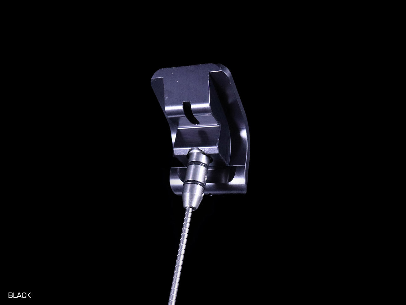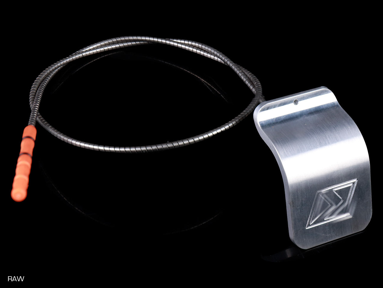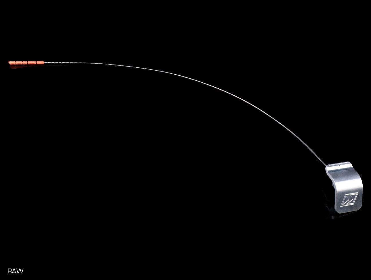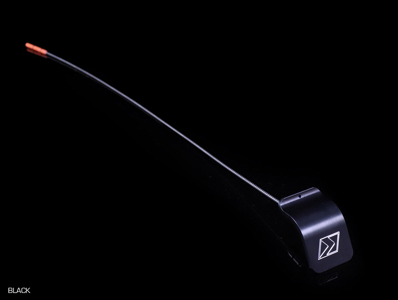 The K-Tuned Billet Oil Dipstick was designed to follow the exact contour of the OEM valve cover, giving it a smooth, shaved look. Along the bottom of front edge is a small flare, which is just enough for removal. Look closer and you'll notice a small hole located at the center of the flared front edge. This can be used to attach a spring tie down on boosted applications where increased crankcase pressures can blow out the dipstick.