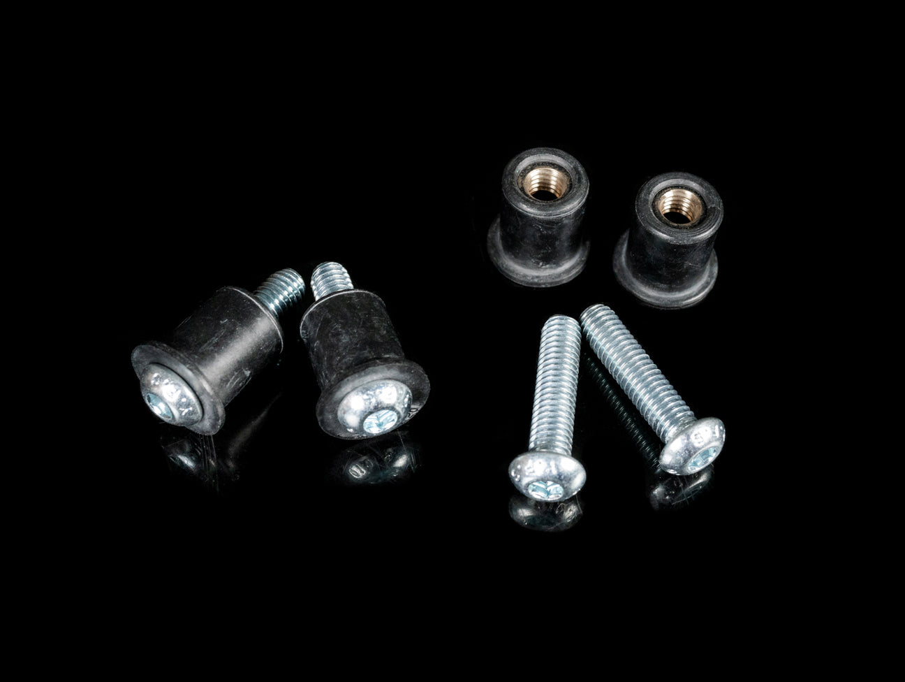 Simply drill two .5" holes and insert well nuts. This allows secure mounting of your radiator and rubber mounts help to limit vibration. Rad stays come with two bolts and spacers that allow the rad stay to be mounted in several ways including above and below of the rad support. Always make sure to do a proper mockup to ensure fitment and placement. You want to make sure rad brackets are in the correct position for radiator hoses and general clearance.