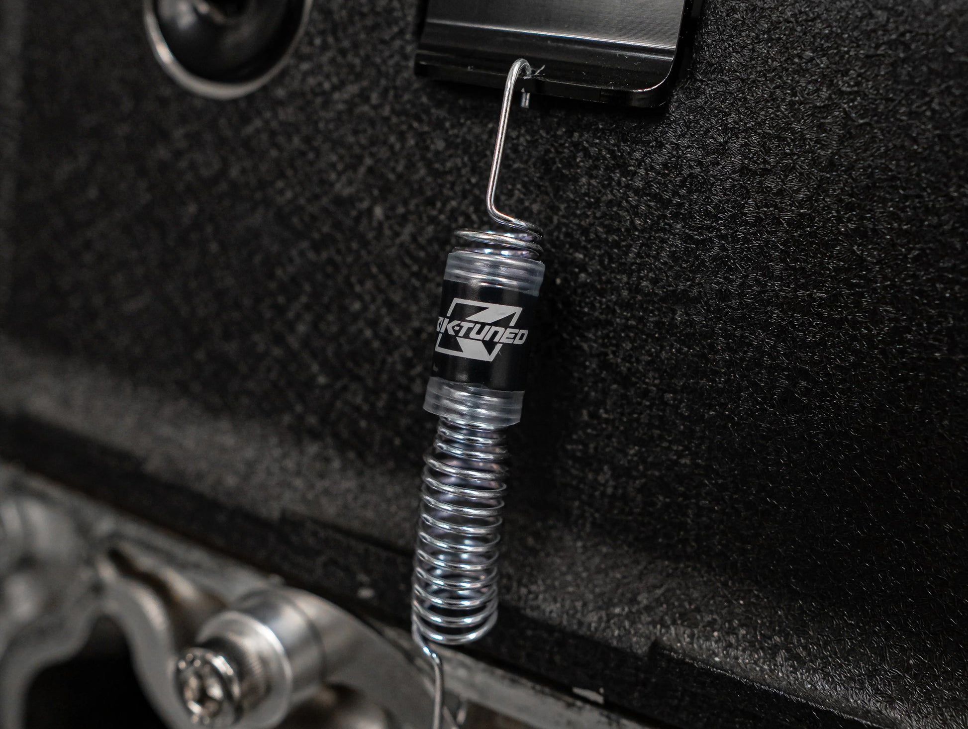 K-Tuned's retention spring kit is designed for high horsepower k-Series cars running a K-Tuned dip stick. The K-Series are known to have crank case pressure issues. This increased pressure can push the dip stick out. K-Tuned's retention spring kit is a simple way to ensure the K-Tuned Dip Stick remains held in place. This will work on all K-Tuned Dip Sticks, K-Tuned has integrated the hole since the beginning.