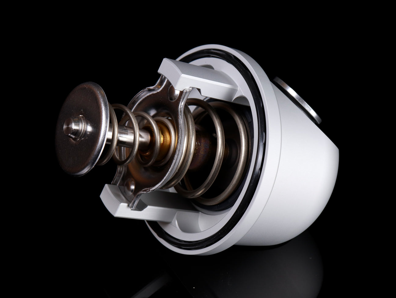 K-Tuned has updated the design of their popular Swivel Neck Thermostat Housing to use an OEM style thermostat which will maintain the factory cooling recirculation port. The OEM style T-Stat will close off the recirculation port when the thermostat opens. They have also included two rad fittings, the standard 1.25" hose outlet and an optional 16AN hose outlet. Swapping out to different temp thermostats would use a 2002 RSX Type S Thermostat.