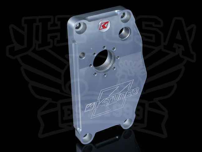For several years now racers have used electric water pumps to reduce the power robbing effects of parasitic drag from their engines. By reducing the number of accessories the crank needs to turn there can be some impressive gains. The K-Tuned Water Pump Block Off Plate system was designed to setup a K-series engine to run an electric water pump cooling system. It replaces all the bulky and heavy OEM accessories with a simple lightweight aluminum plate. The kit is designed to allow the perfect flow of coolant and also effectively release unwanted crankcase pressure. The water port is sealed just like it was from the factory using an o-ring seal. The breather port is threaded for an 8AN fitting and can easily be routed to any catch can set-up.