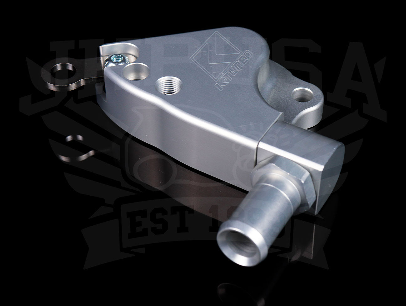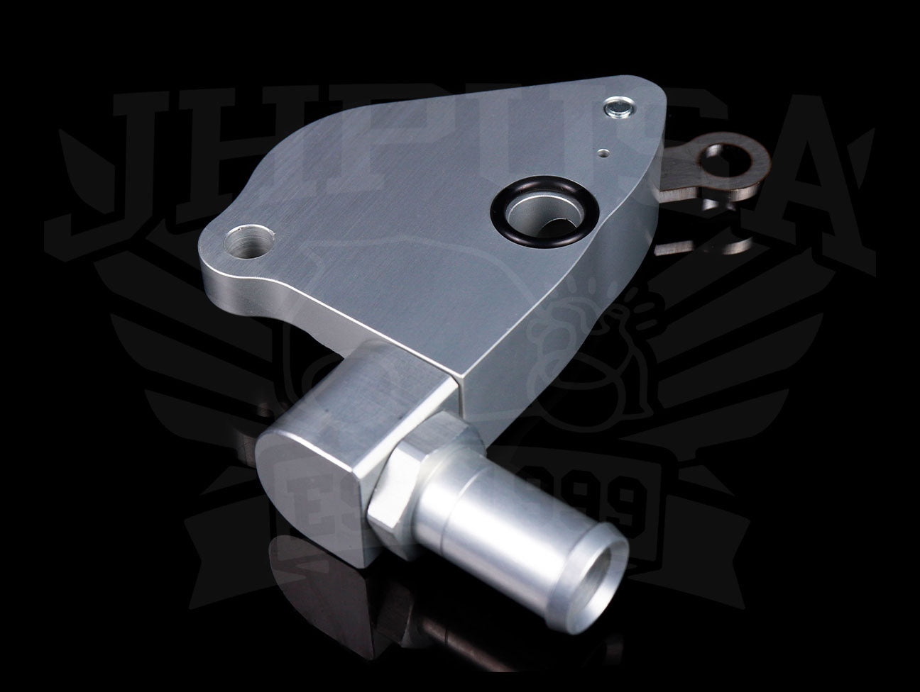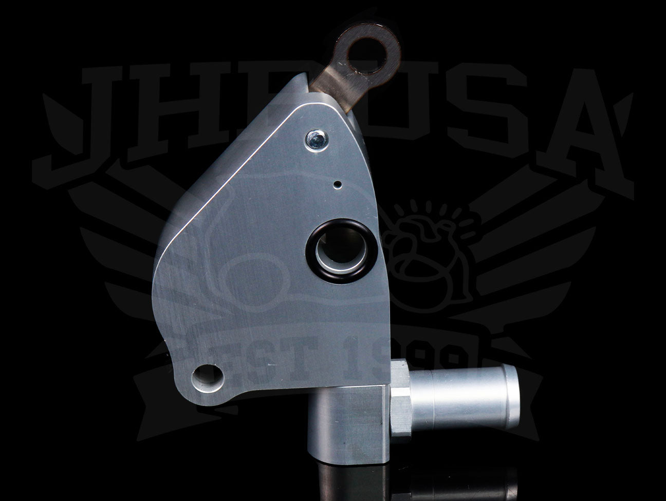 The K24 Intake Manifold Adapter is a simple and easy way to install K20 style manifold on K24 heads. The recirculation fitting on K24s is typically part of the intake manifold which isn’t on K20 intake manifolds. We have designed the adapter to work with all K24 heads including the K24Z-Series (R40) heads. This can also be used to install K20 manifolds or cut RBC manifolds on 9th gen Civic si as the water bypass is slightly different and you will not need an intake manifold adapter when using the adapter. The adapter lowers intake air temps as coolant is no longer connected the intake manifold. Hondata has shown that intake air density will drop 1% for every 5°F increase in intake temperature. This is wasted power that can easily be gained back by using the adapter. The adapter also features a 1/8 NPT port for a coolant temp sensor commonly used in swap cars.