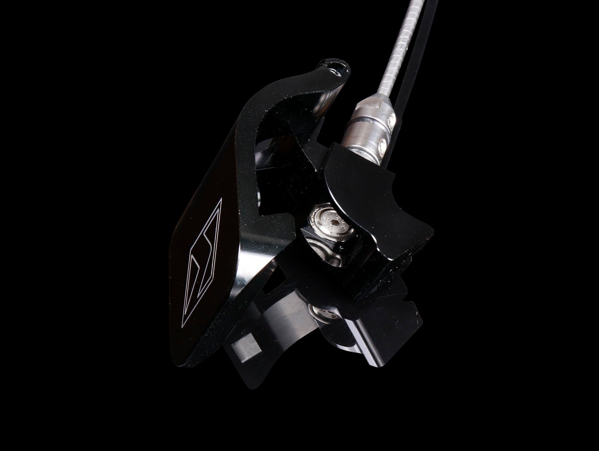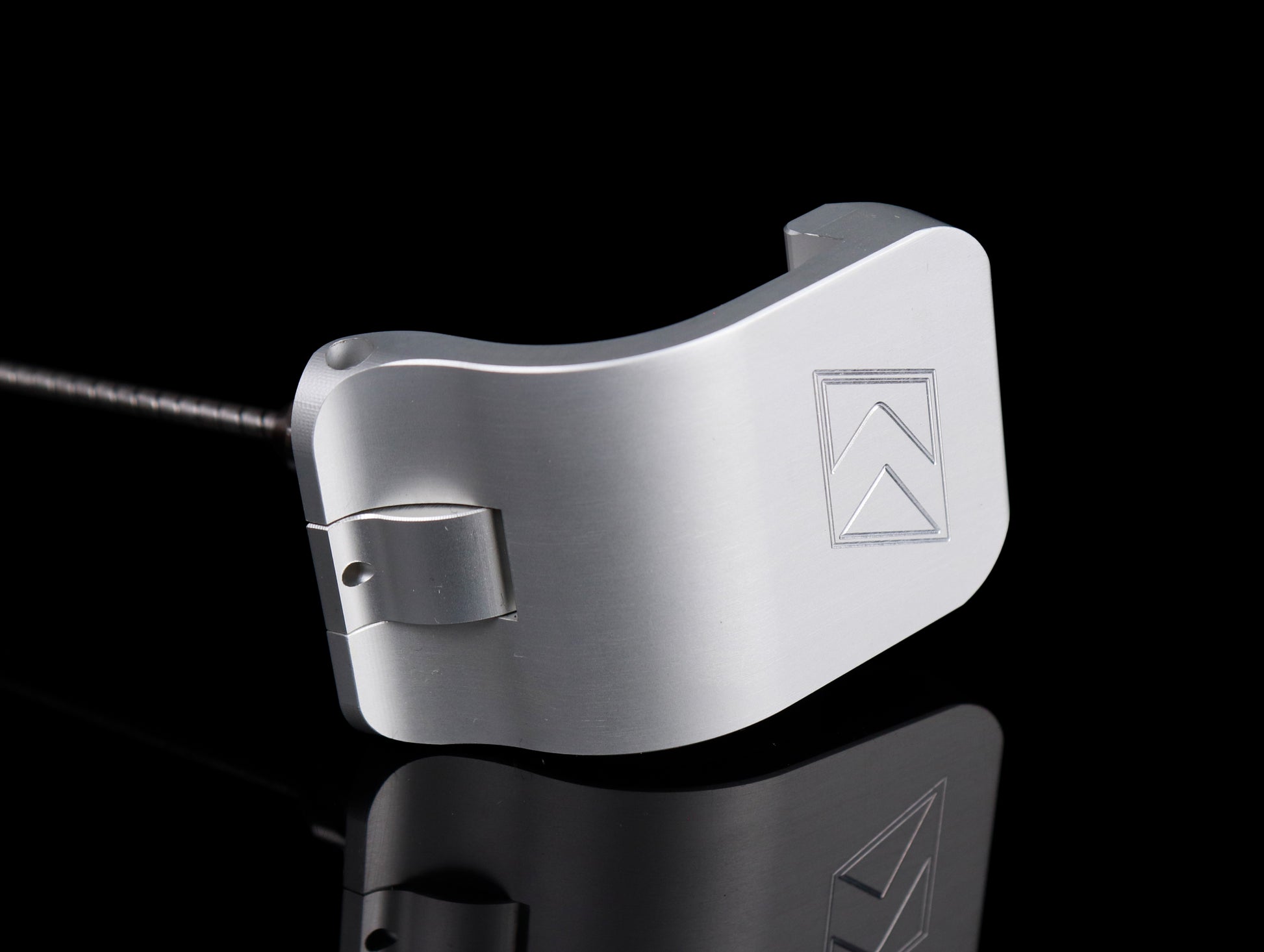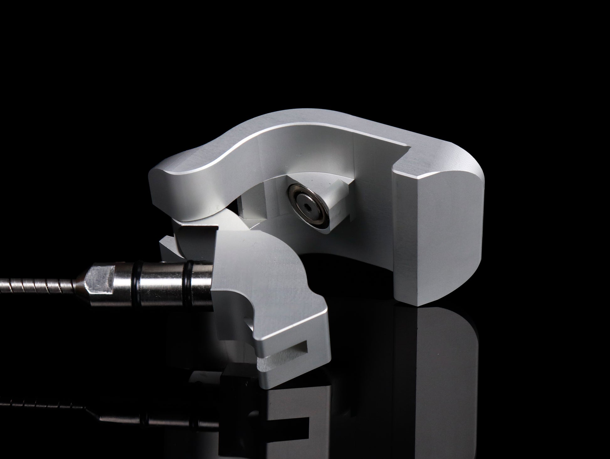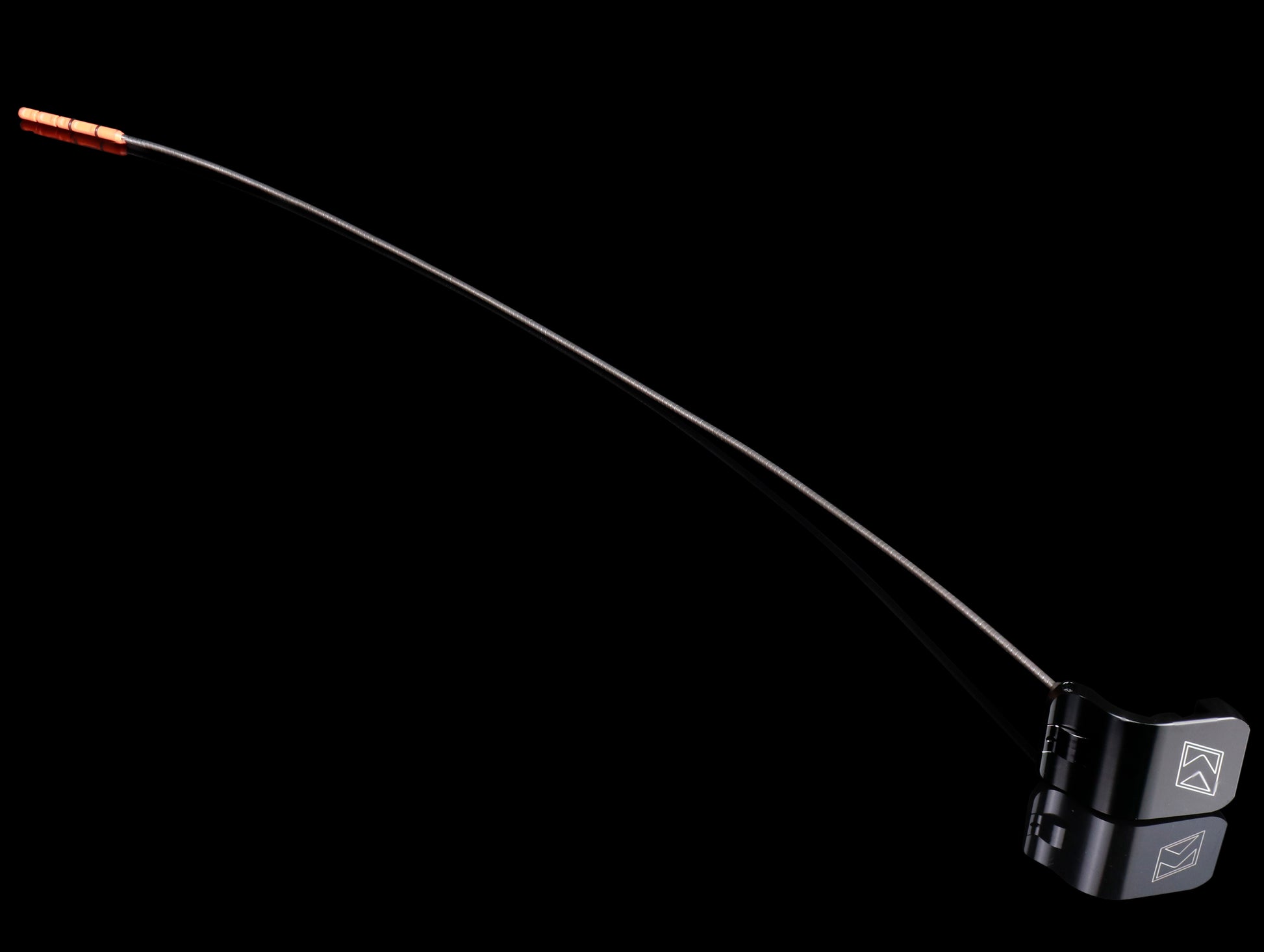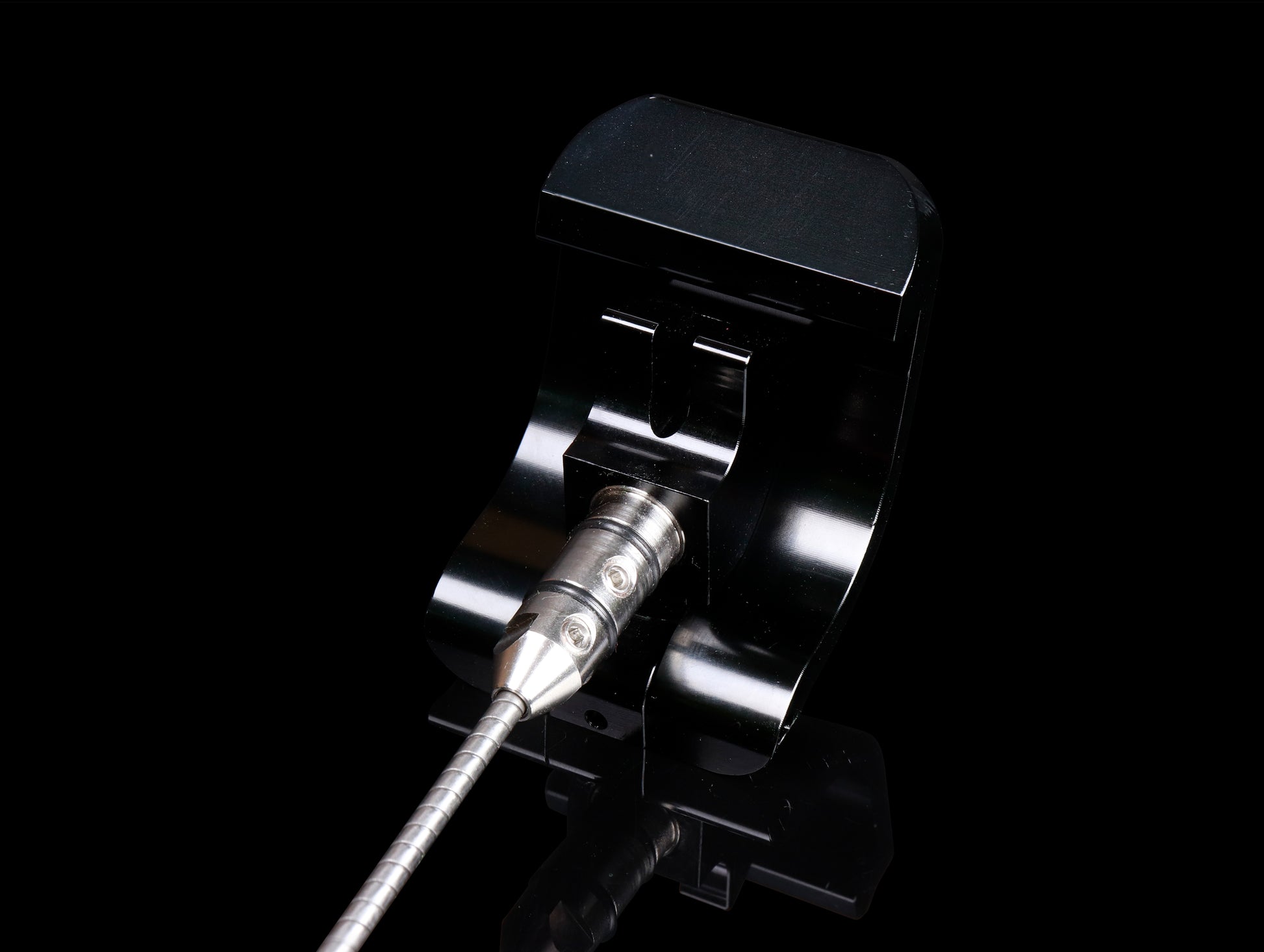 The K-Tuned Billet Oil Dipstick was designed to follow the exact contour of the OEM valve cover, giving it a smooth, shaved look. Along the bottom of front edge is a small flare, which is just enough for removal. Look closer and you'll notice a small hole located at the center of the flared front edge. This can be used to attach a spring tie down on boosted applications where increased crankcase pressures can blow out the dipstick.